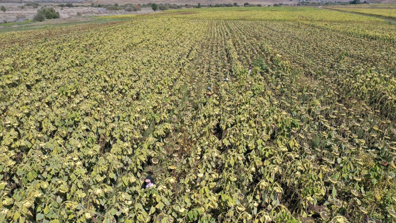 Büyük bir bölümü Kahramanmaraş`tan gelen çiftçilerce 34 bin dekarlık alanda ekilen çerezlik ayçiçeği, yaz boyunca sulandı, bakımları yapıldı ve artık olgunlaştı.