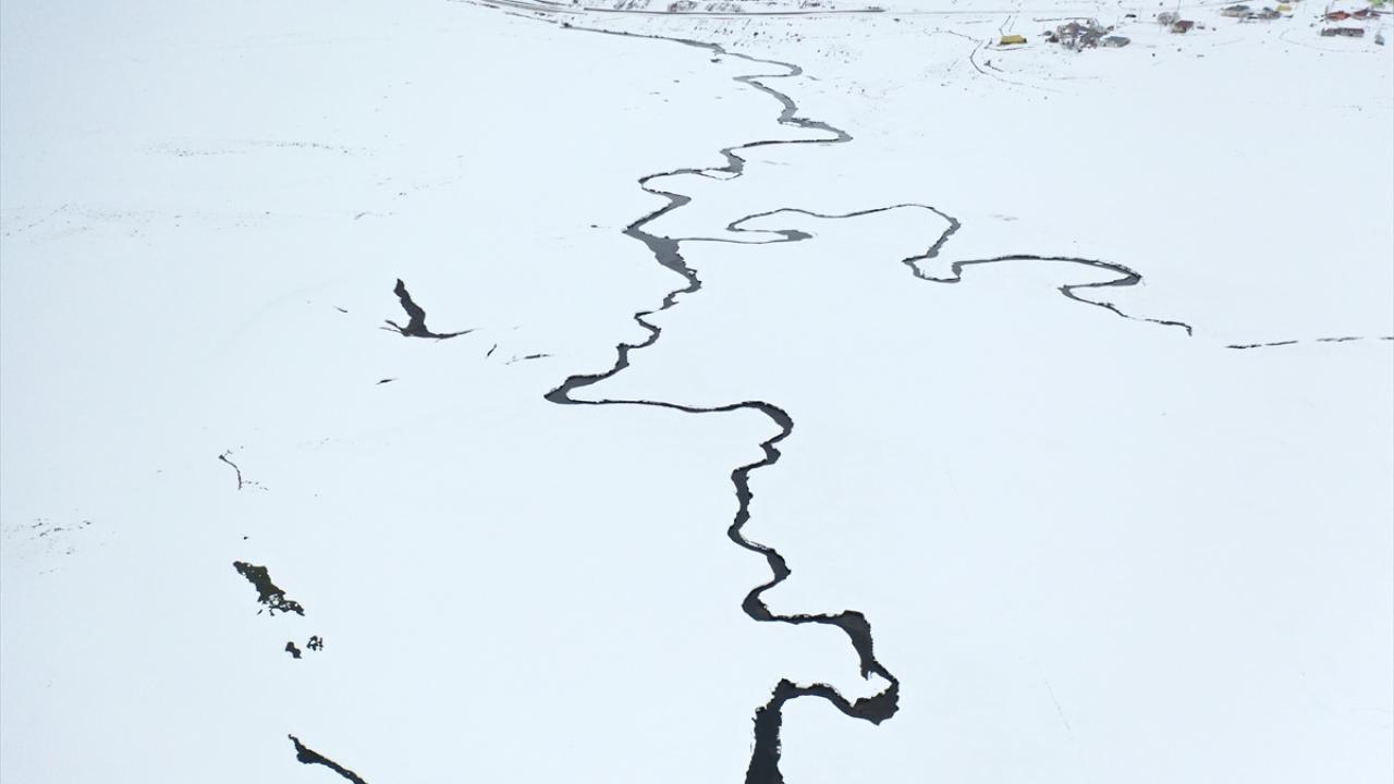 Ağrı'nın karla kaplı menderesleri dronla görüntülendi