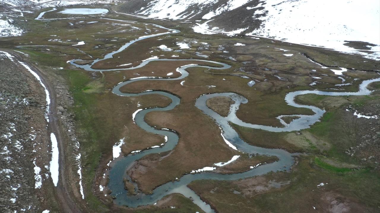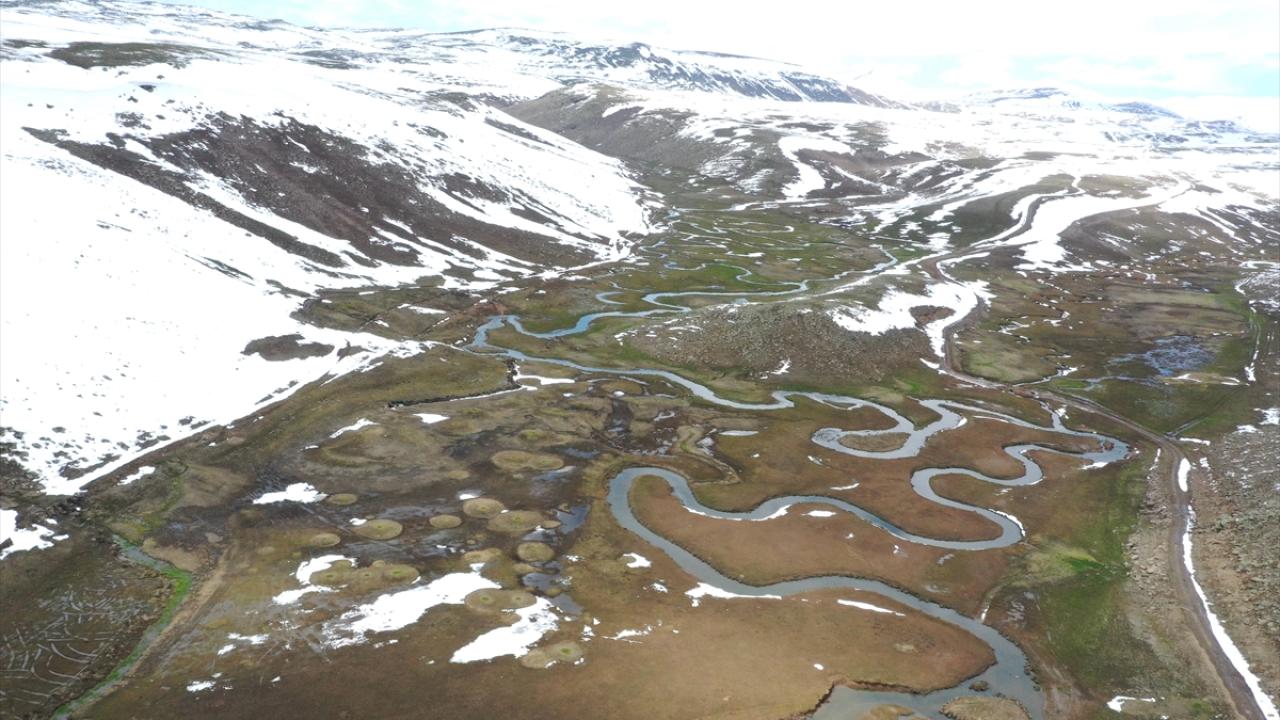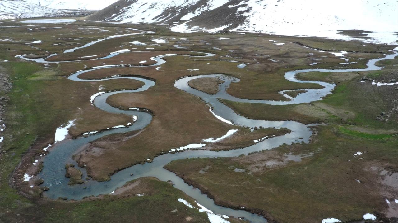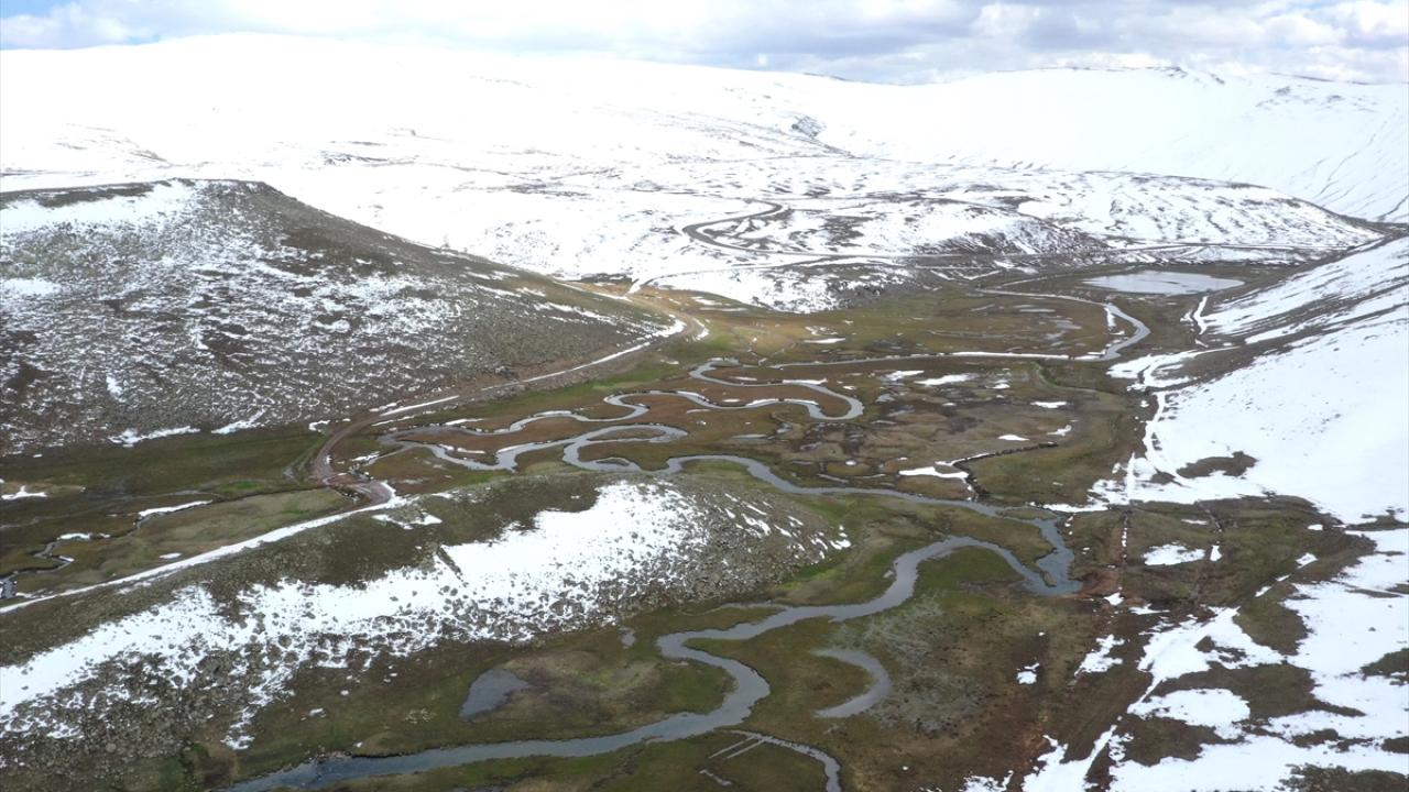 Karlı dağlar ve çevresindeki sulak alanlar dronla görüntülendi.