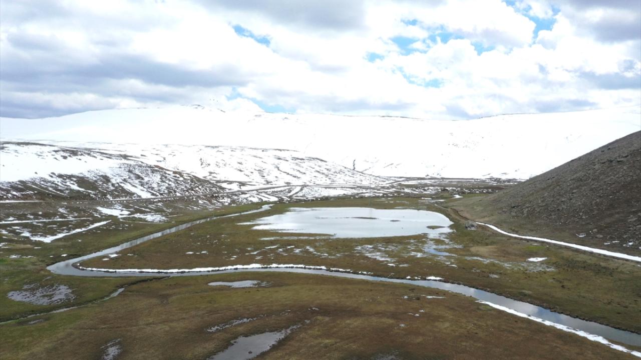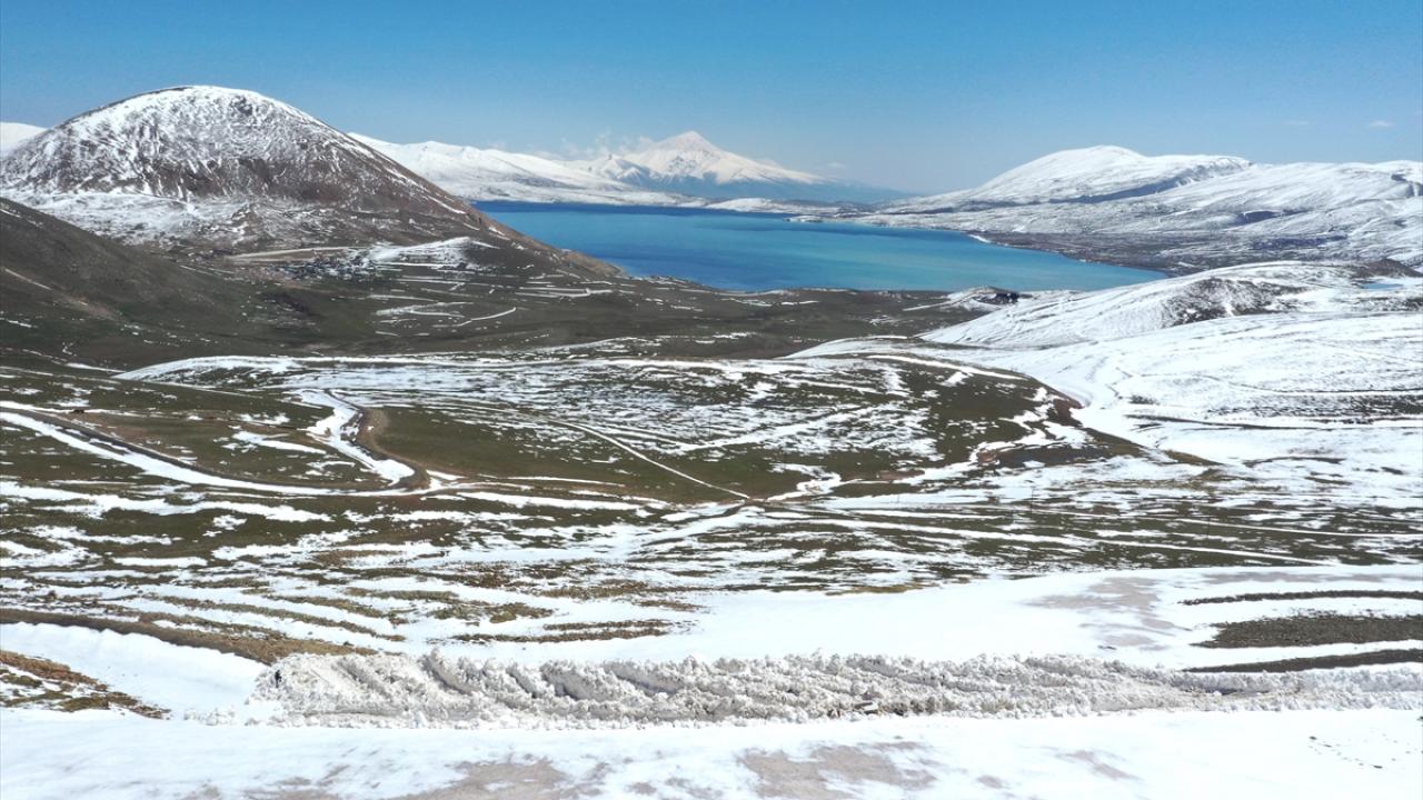 Taşlıçay ilçesindeki Balık Gölü çevresinde bulunan dağlarda kar, nisan ayının sonuna doğru erimeye başladı. Bir yanı bahar, bir yanı kış olan dağlar, manzarasıyla etkileyici görüntüler oluşturuyor.