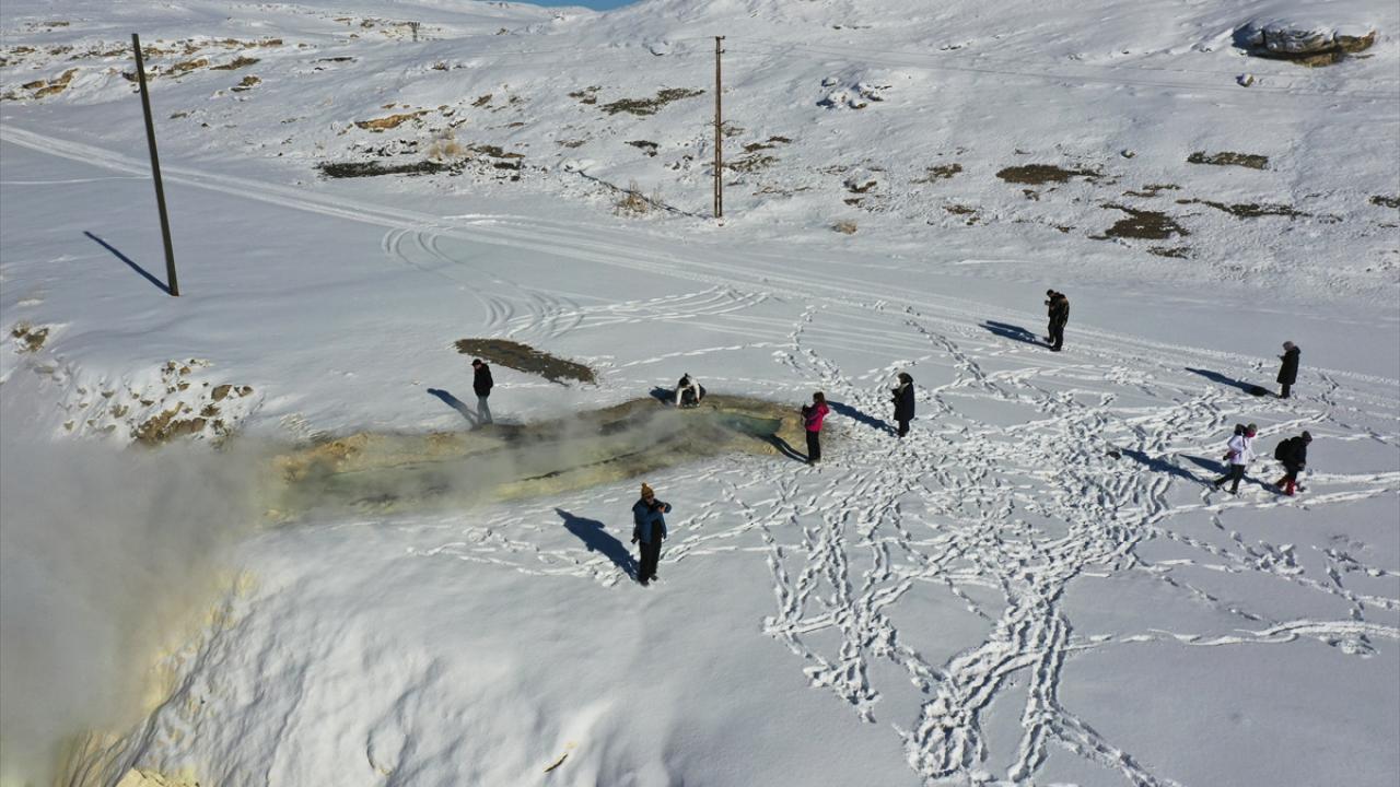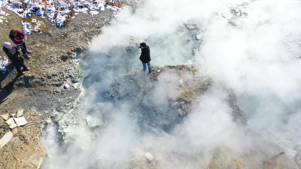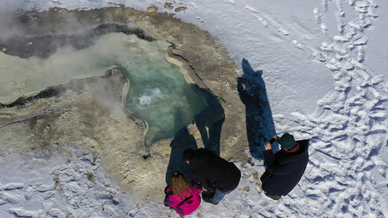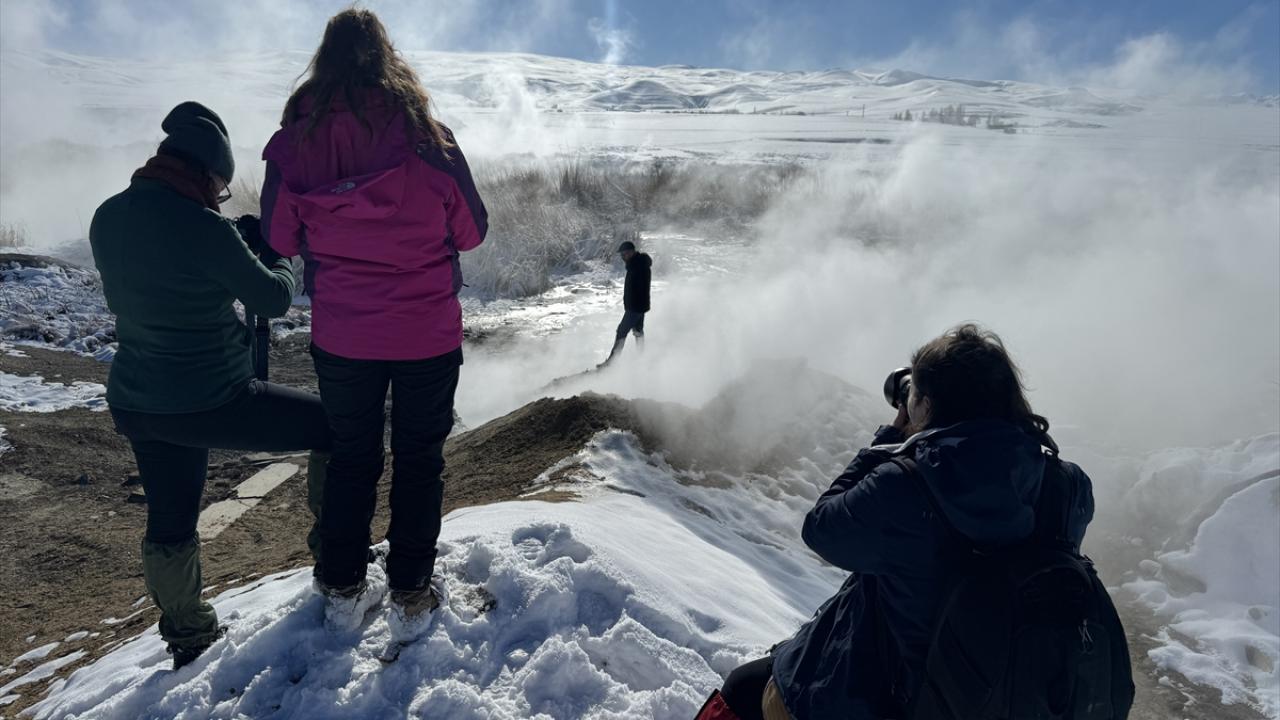 Diyadin ilçesindeki Murat Kanyonu ile jeotermal alanda yerin altından çıkan sıcak suyun bulunduğu kaplıca alanını gezen fotoğraf tutkunları, buradaki doğal güzellikleri fotoğraflıyor.