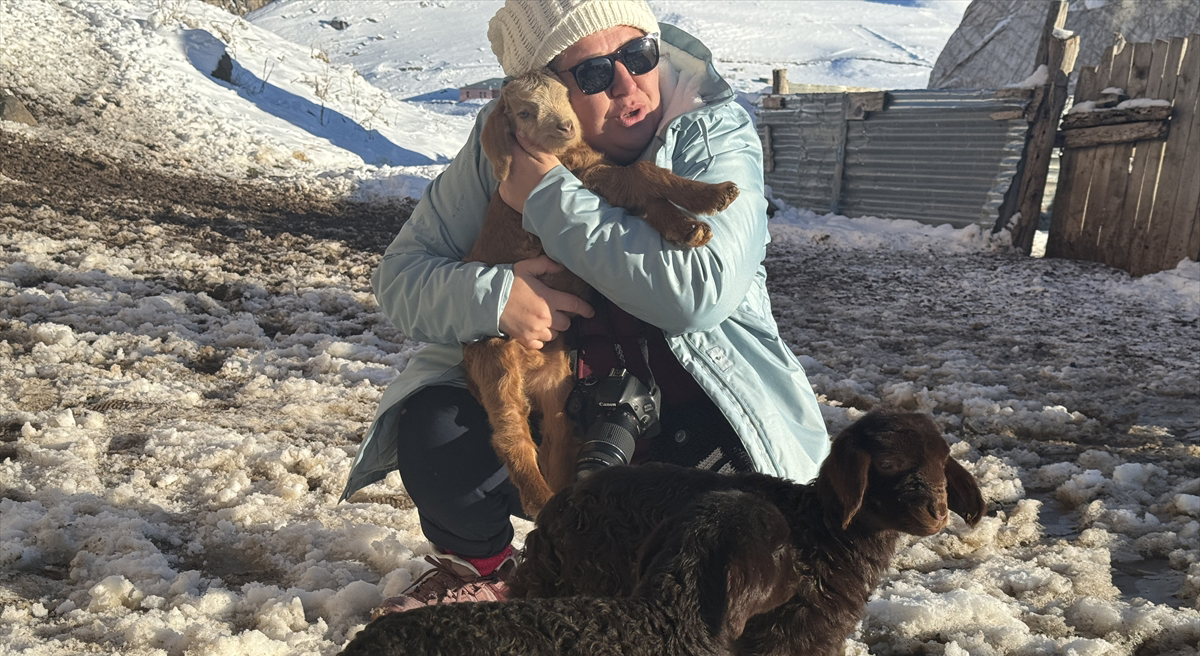 Minare, kar ve buzla kaplı baraj gölünün çevresini gezenler, hem Balık Gölü`ne yakın köylerde yaşama dair fotoğraf çekiyor hem de gittikleri köylerde yeni doğan kuzuları sevip vatandaşlarla sohbet ederek keyifli vakit geçiriyor.
