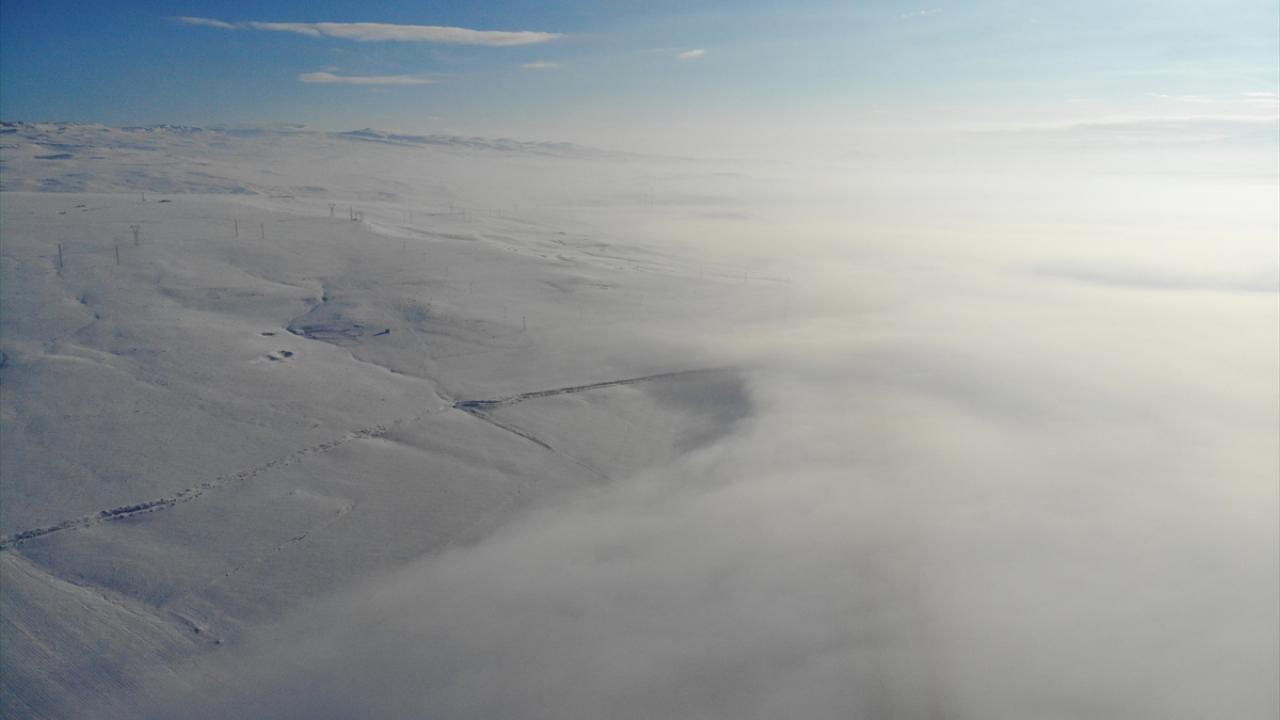 Ağrı'yı kaplayan kar ve sis dronla görüntülendi