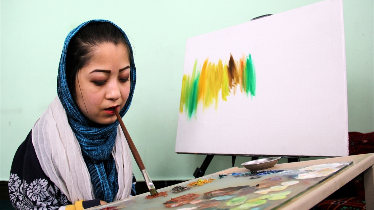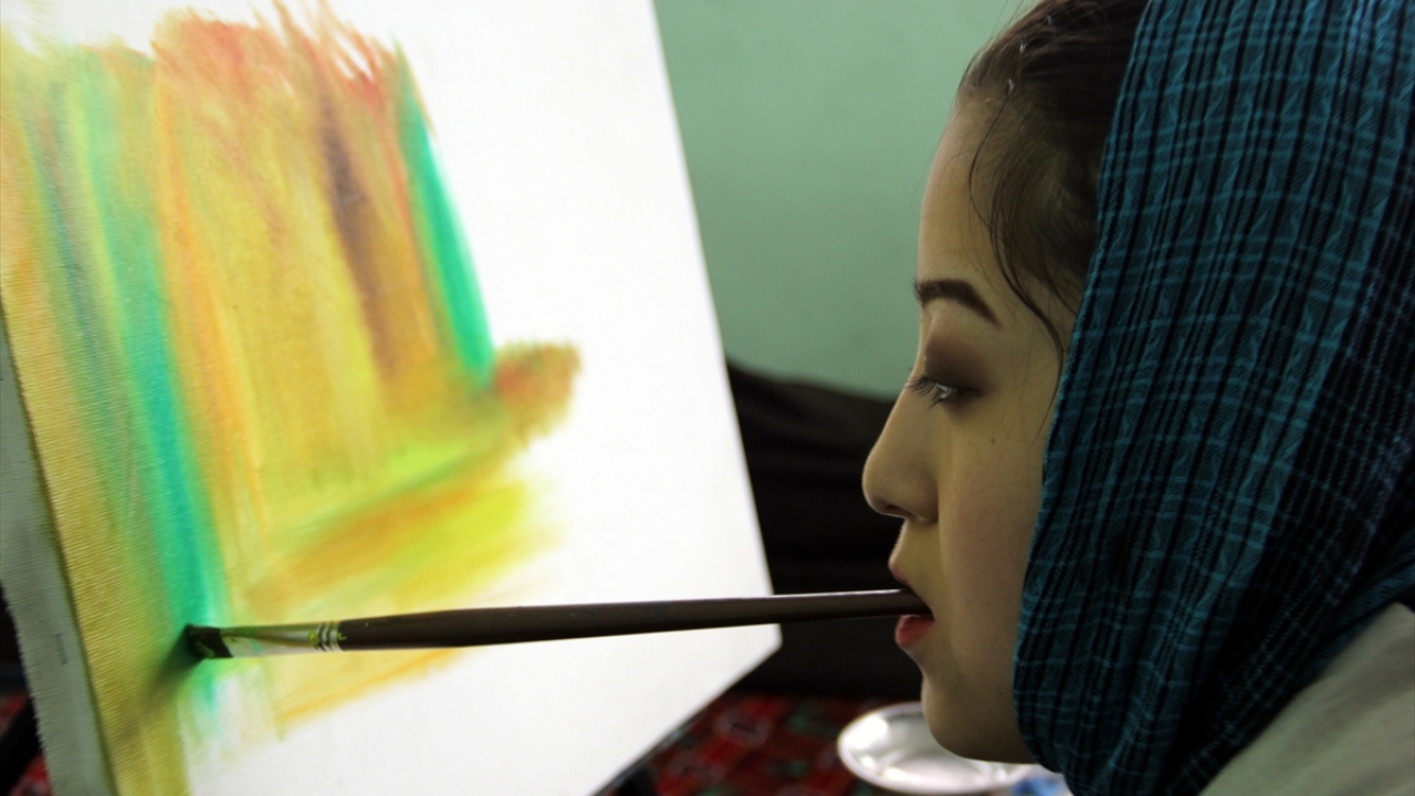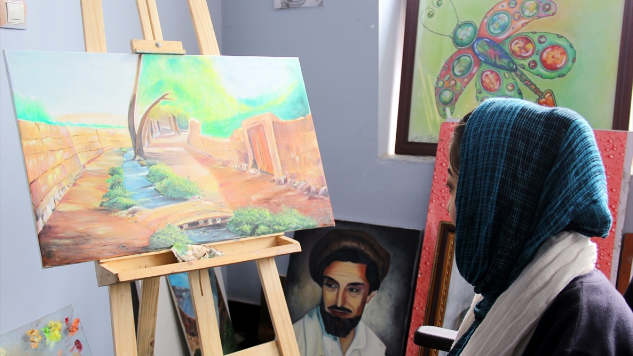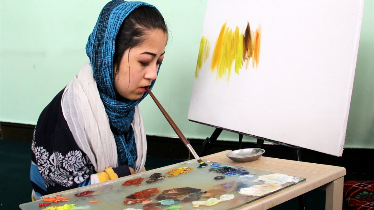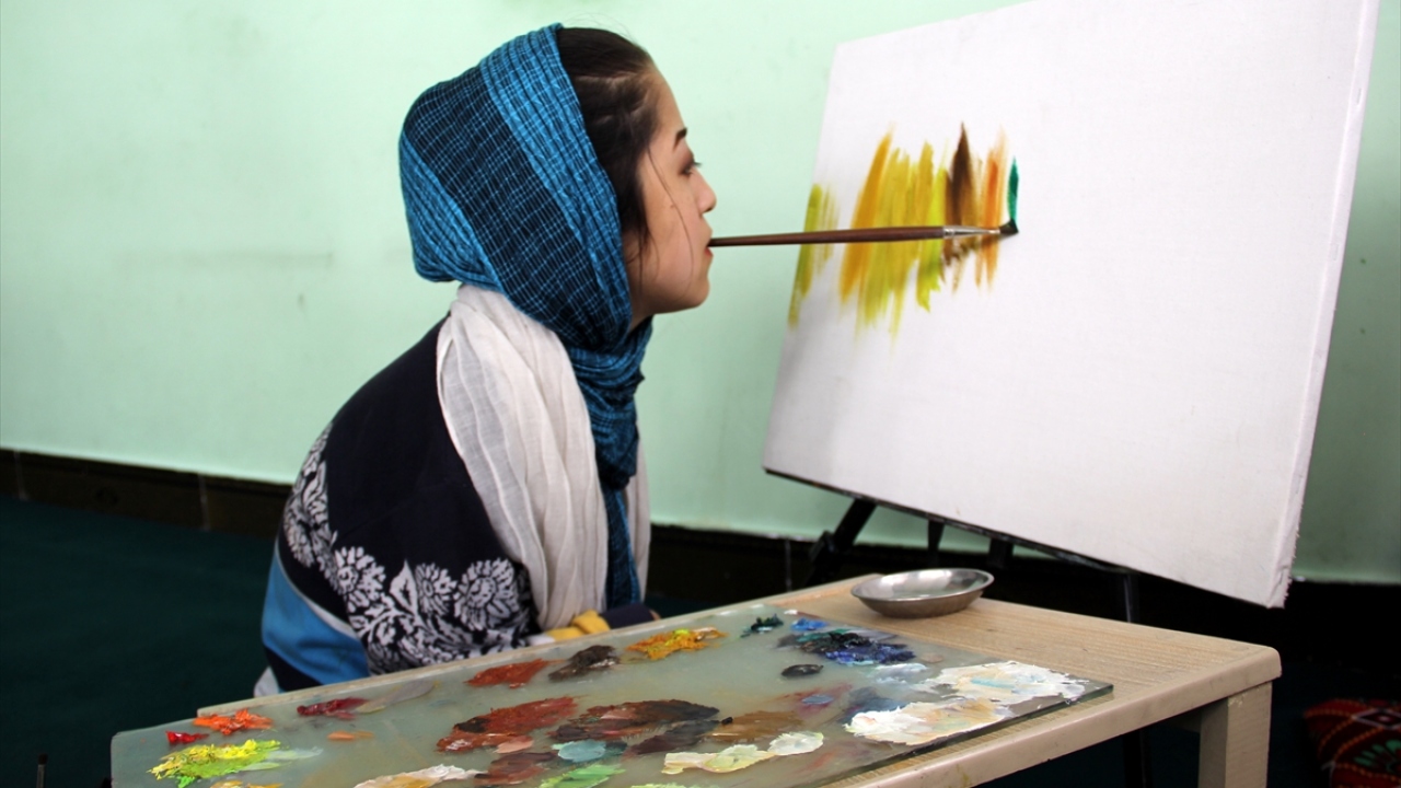 Afganistan'nın başkenti Kabil'de yaşayan el ve ayakları felçli Rubaba Muhammedi, ağzıyla kullandığı fırça ve kalemle çizdiği resimleri satarak ailesini geçindiriyor.