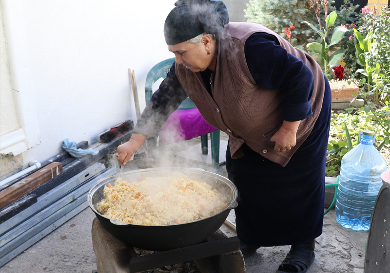 Üzümlü ilçesinde yaşamlarını sürdüren Ahıska Türkü aileler, sürgünde yaşamını yitiren yakınları için mevlit okuttu, misafirlere şerbet ve kazanlarla pişirilen yemeklerden ikram etti.