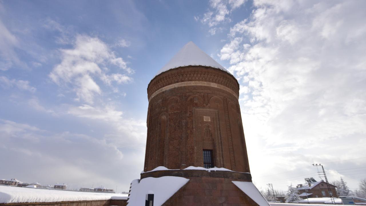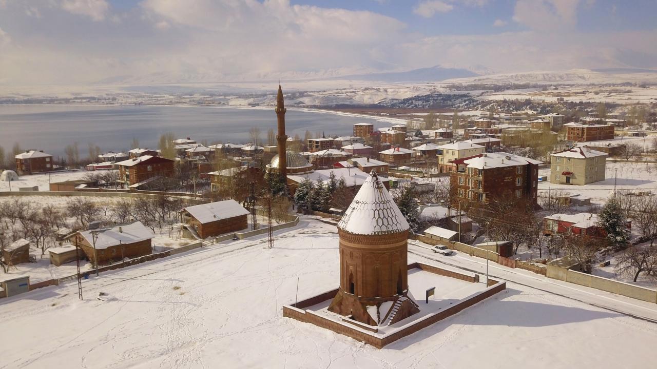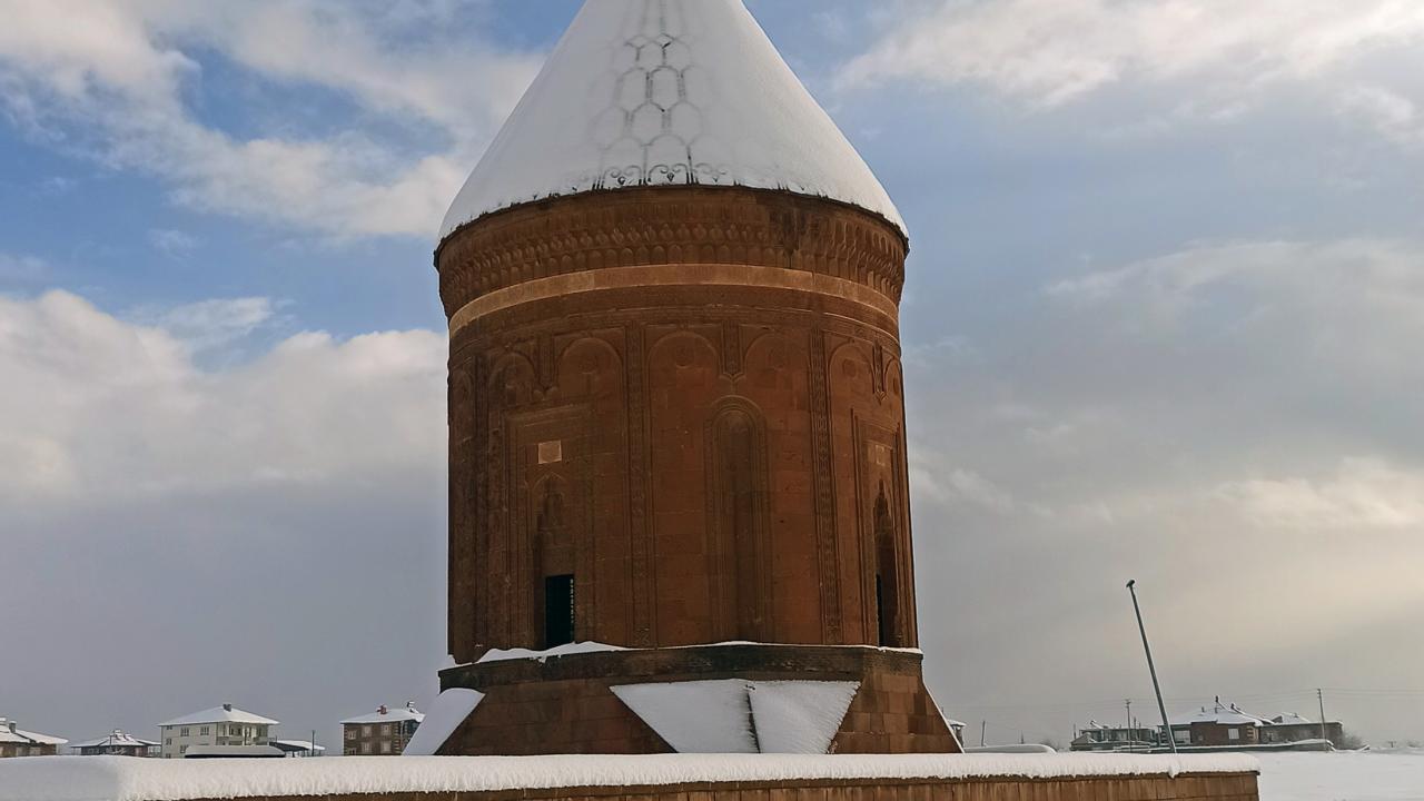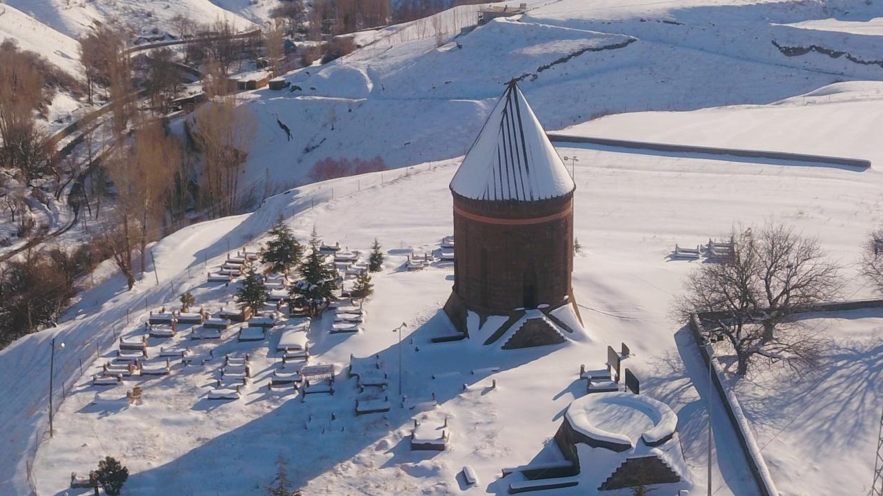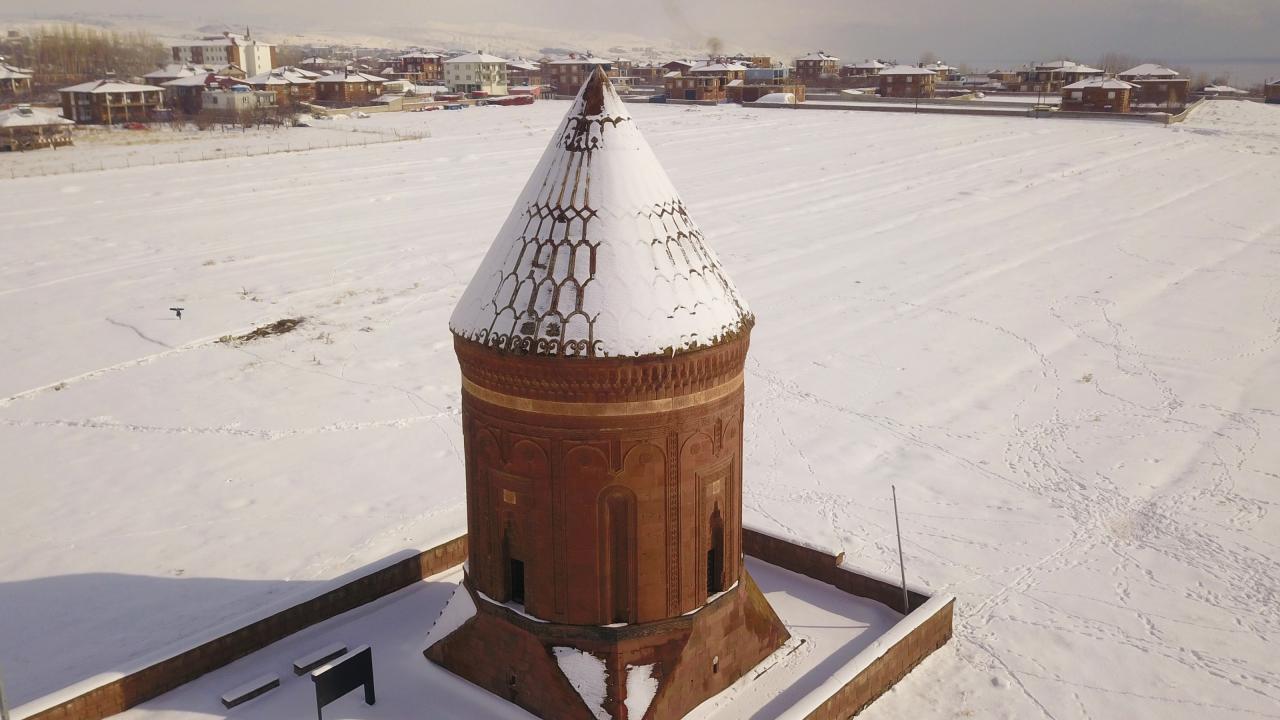 Anadolu’nun Orhun Abideleri olarak da adlandırılan 210 dönüm üzerinde kurulu Ahlat Selçuklu Meydan Mezarlığındaki mezar taşlarının üzerindeki yazılar; kabartmalar, nakış ve işlemeler, kar yağışı sonrası ziyaretçilerini hayran bırakan bir güzelliğe bürünüyor.