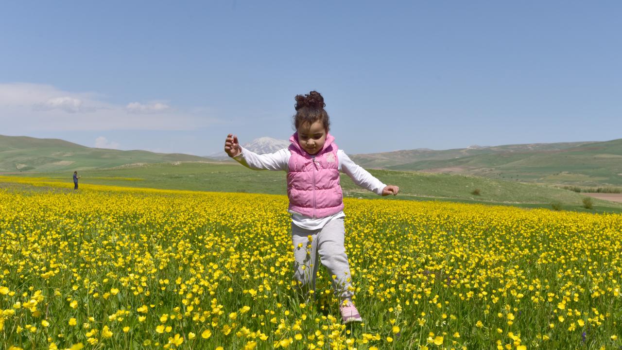 Sarı çiçeklerin içinde çocukları ile birlikte gezen aileler güzel vakit geçirirken, fotoğraf tutkunları ise oluşan manzarayı fotoğraflayarak arşivlerine katıyor.