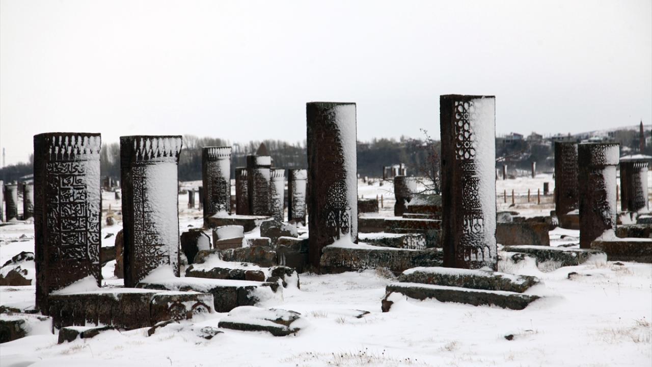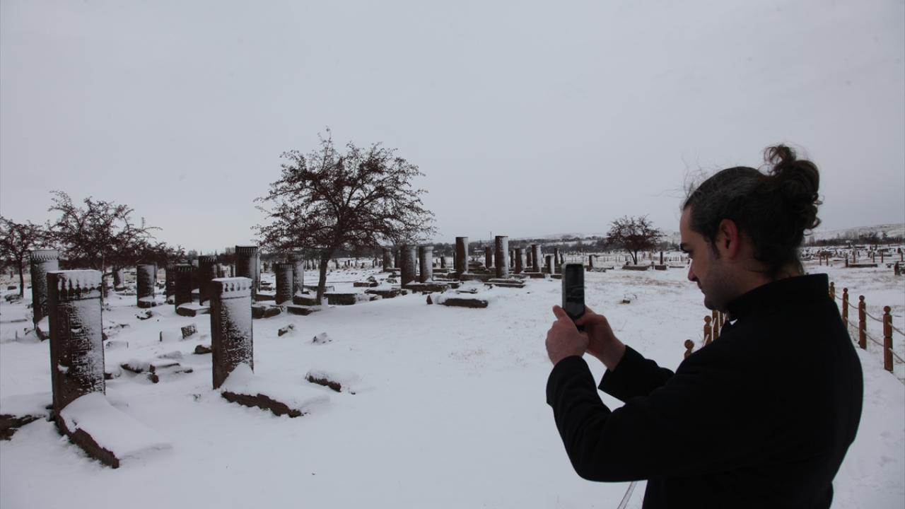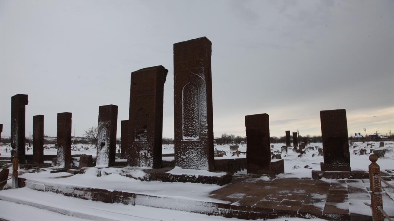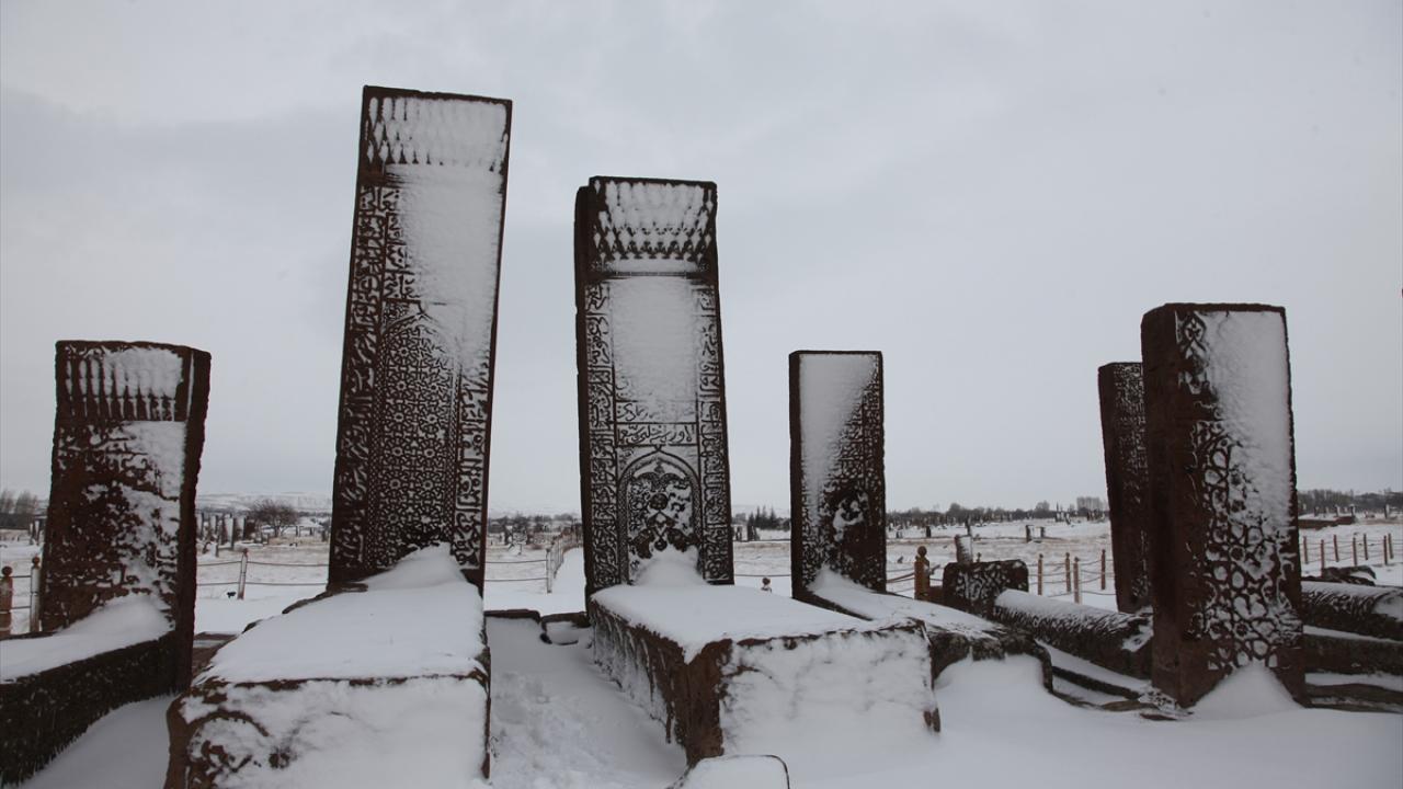 UNESCO Dünya Kültür Mirası Geçici Listesi`nde yer alan Selçuklu Meydan Mezarlığı da beyaza büründü.
