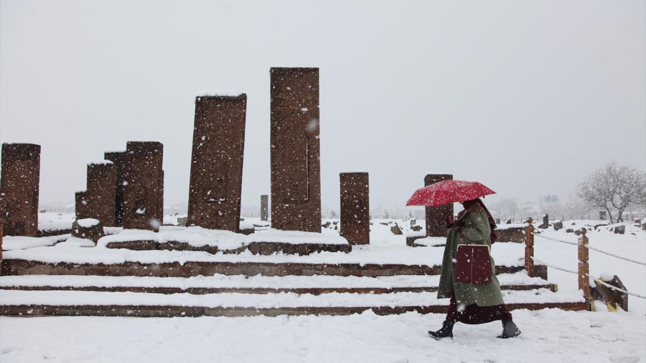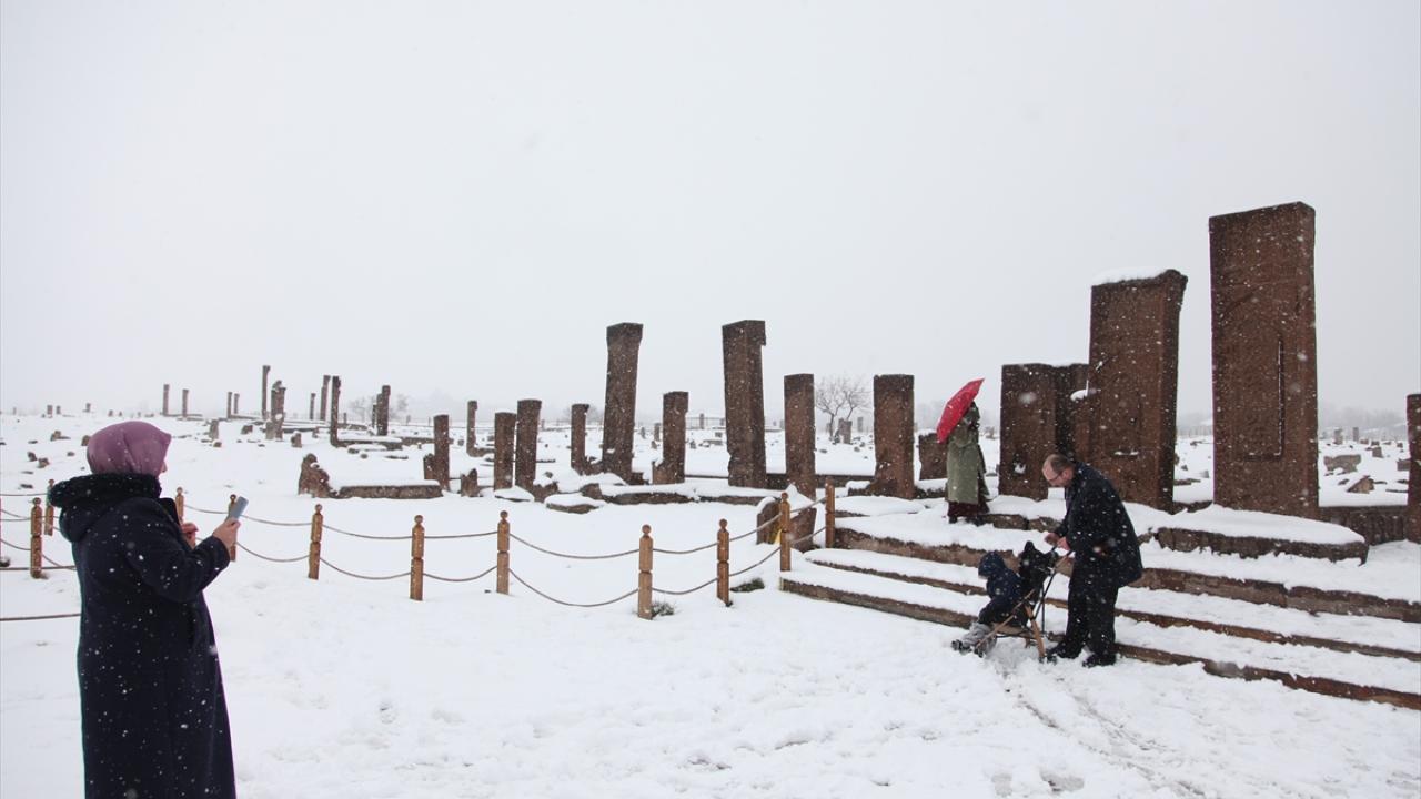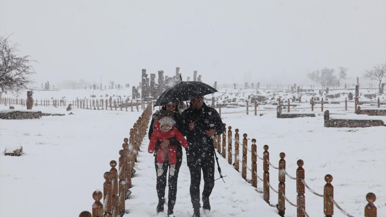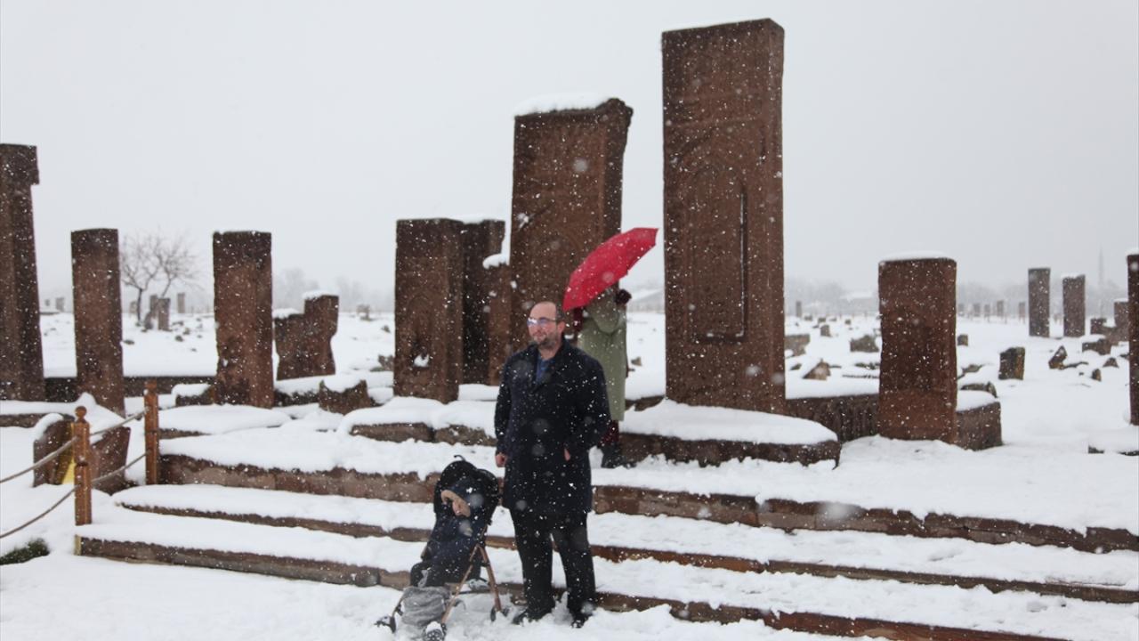 UNESCO Dünya Kültür Mirası Geçici Listesi`nde yer alan Selçuklu Meydan Mezarlığı da beyaza büründü.