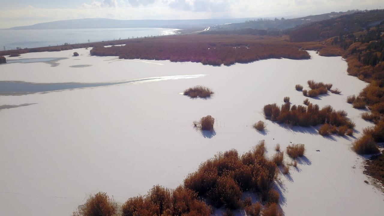 Onlarca kuş türünün uğrak yeri olan kuş cennetinin donması, çok sayıda kuşun sıcak bölgelere göç etmesine sebep olurken, gölün donmayan akarsu yatağında bulunan bazı kısımlarında ise az sayıda kuş türü yaşamını sürdürüyor.