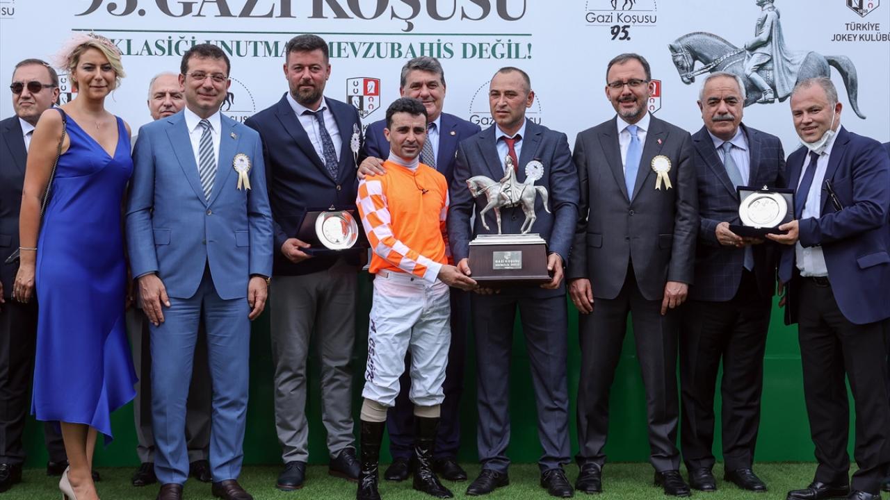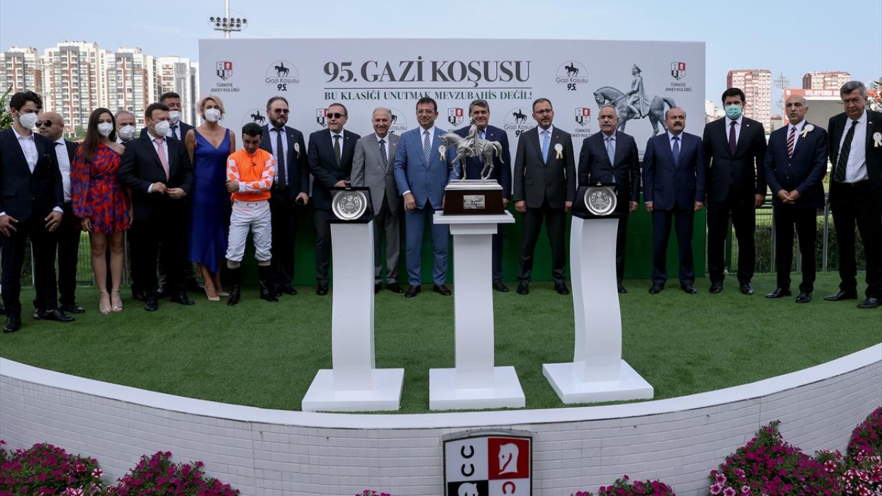 Sanem Kahraman`ın sahibi olduğu, jokeyliğini Ahmet Çelik`in yaptığı "Burgas" adlı safkanın 2.27.36`lık dereceyle kazandığı 95. Gazi Koşusu`nun ödül töreni yapıldı.