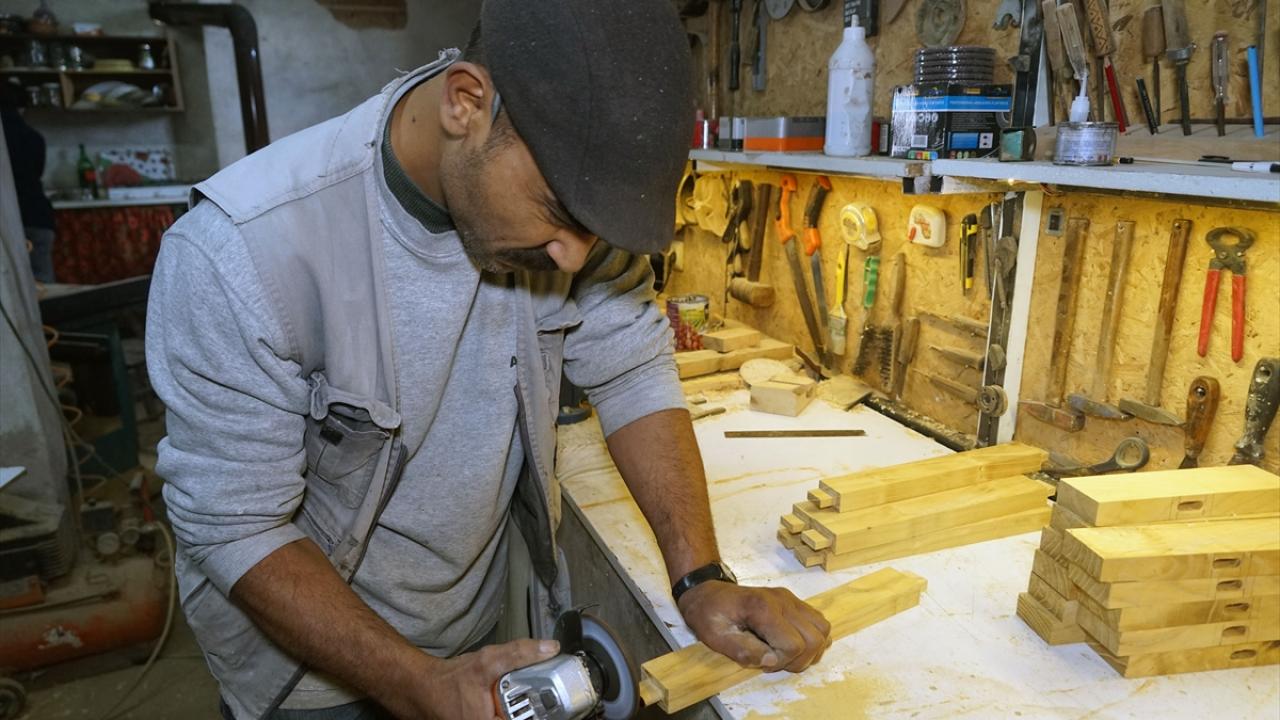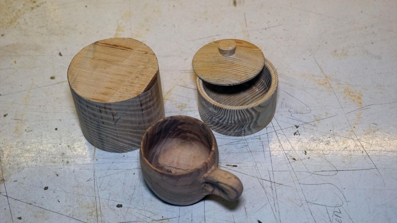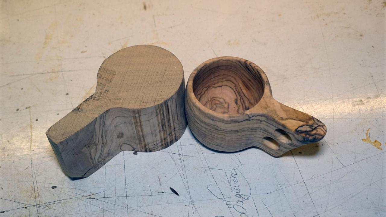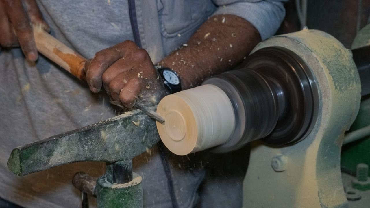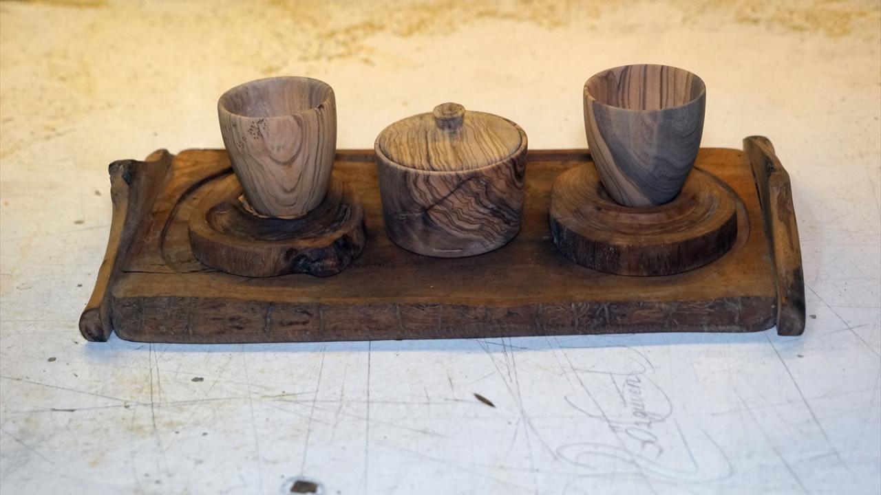 Balıkesir'in Edremit ilçesindeki atölyesinde bir ustanın ahşap malzemelerden ürettiği mutfak eşyaları ilgi görüyor.