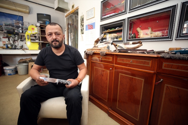 Düzce'de, hobi olarak başladığı oymacılıkta ustalaşan Mehmet Şeker, hayvan figürleri ve Osmanlı motifleriyle süslediği bıçaklardan "sanat eseri" ortaya çıkarıyor.