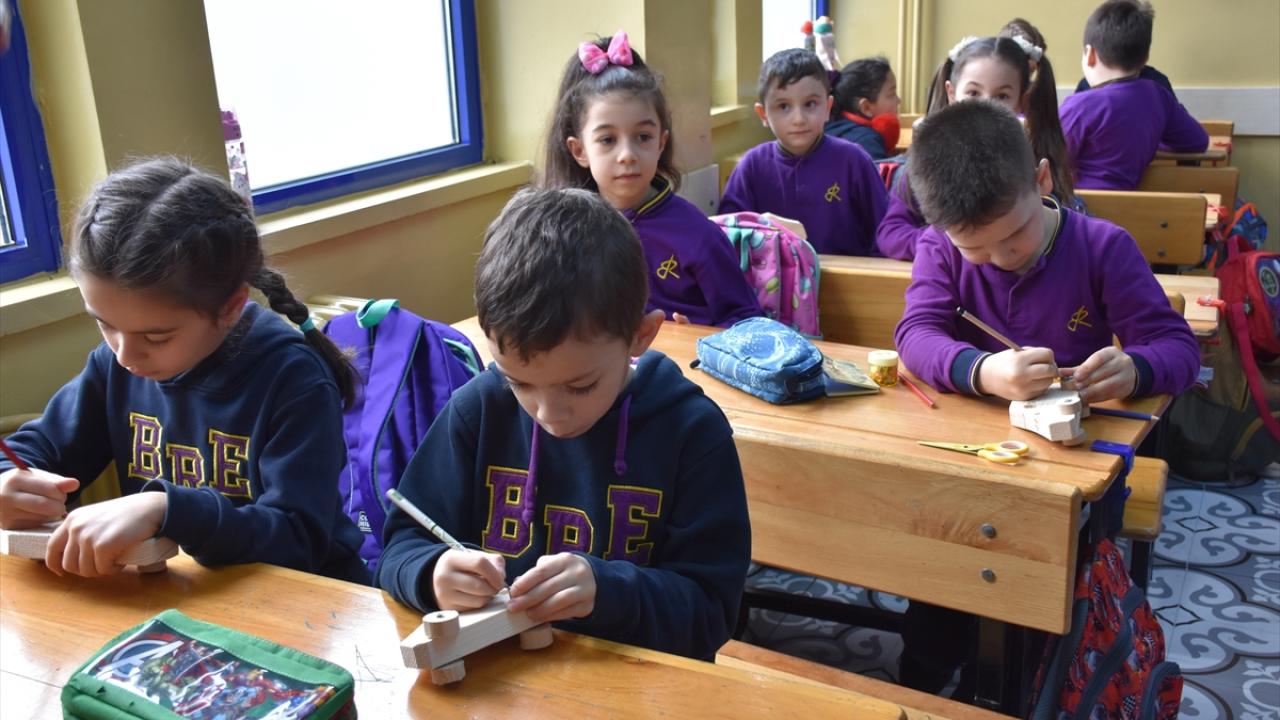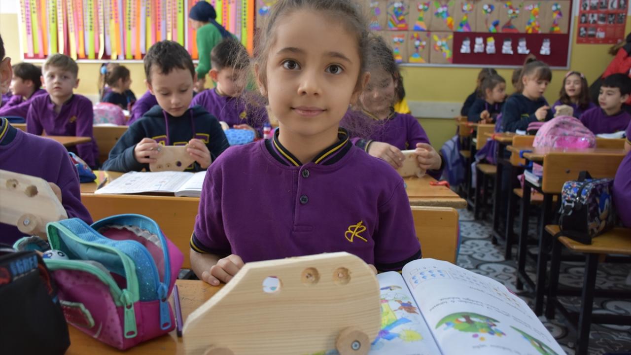 Öğrencilerden Şimal Reis, sınıf arkadaşının dedesine teşekkür ederek, "Bize çok güzel oyuncaklar yaptı, onları boyayıp oynayacağız." dedi.