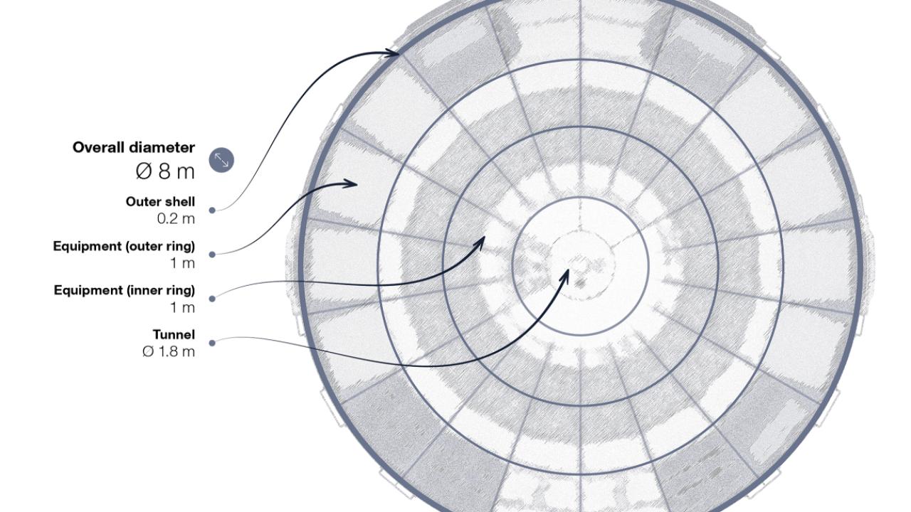 Modülün çapı 8 metre ve kabaca aynı uzunluktadır ve 100 metreküp hacim sağlıyor.