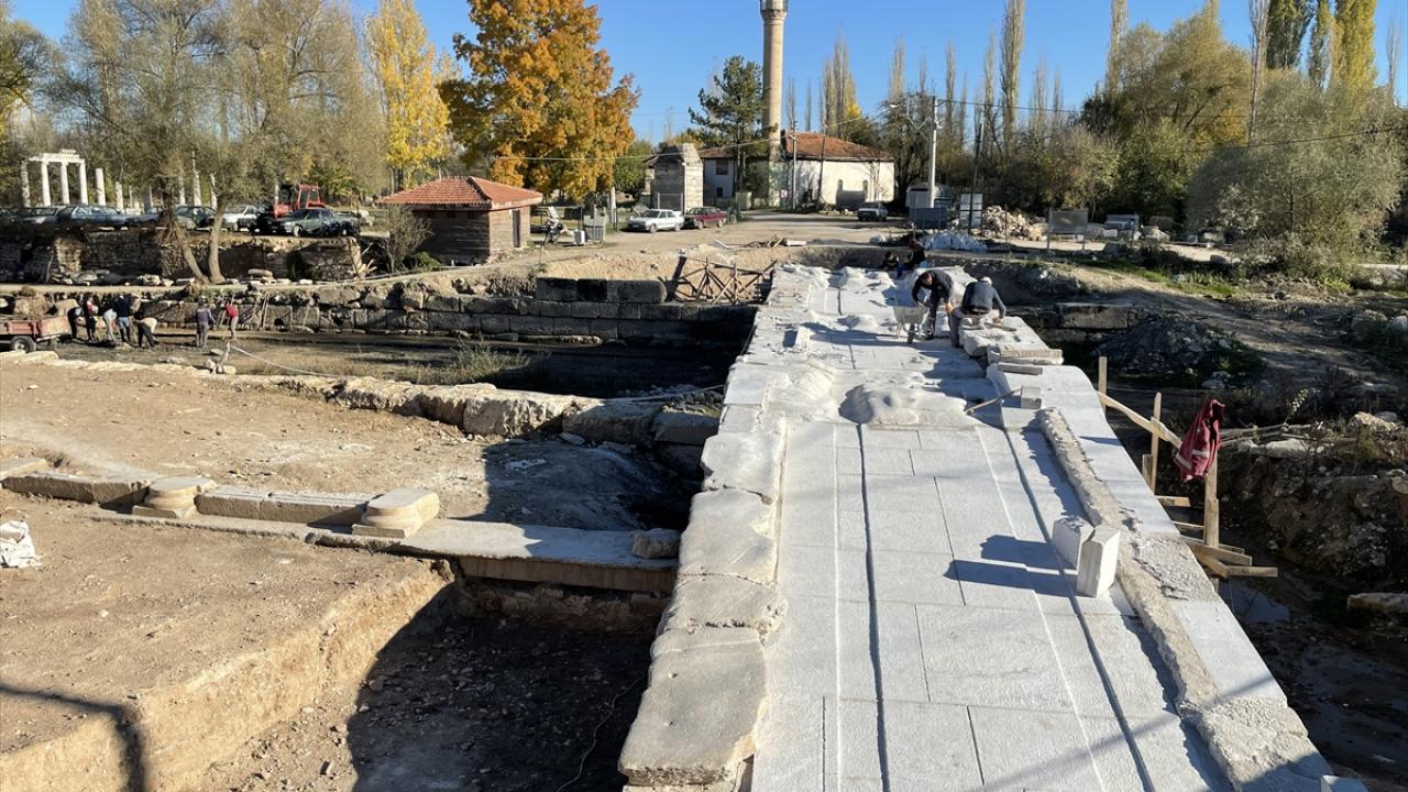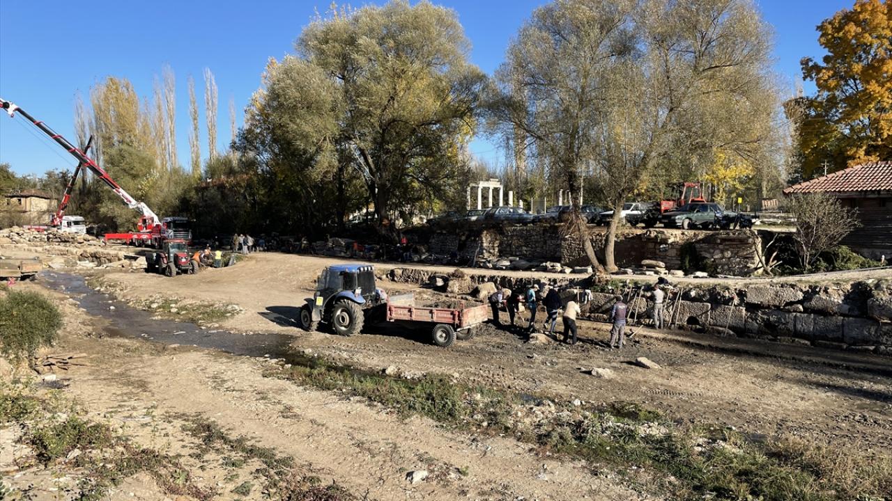 Penkalas Projesi kapsamında kazı ve restorasyon çalışmaları yürütüldüğünü anlatan Coşkun, "Antik çağda `Penkalas`, günümüzde `Kocaçay` olarak bilinen çay yatağında kazı çalışmalarını sürdürüyoruz. Çay üstünde 5 köprünün olduğunu biliyoruz. Bunlardan birinin ahşap köprü olduğunu antik yazarlar bildiriyor. Bu köprülerden birinin restorasyonu bitirildi, birinin de devam ediyor. Diğerinin ise kazısına başlandı" dedi.