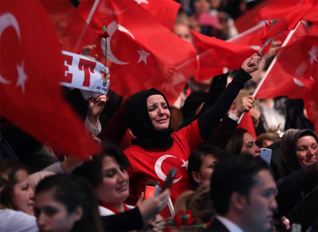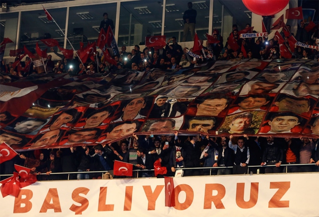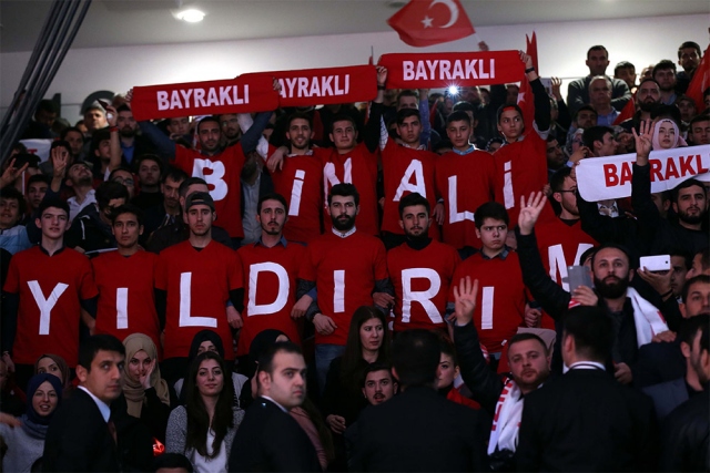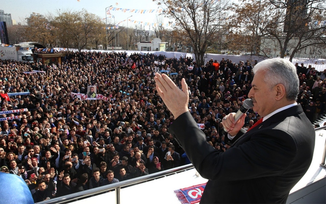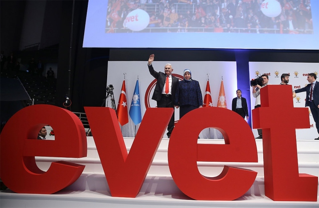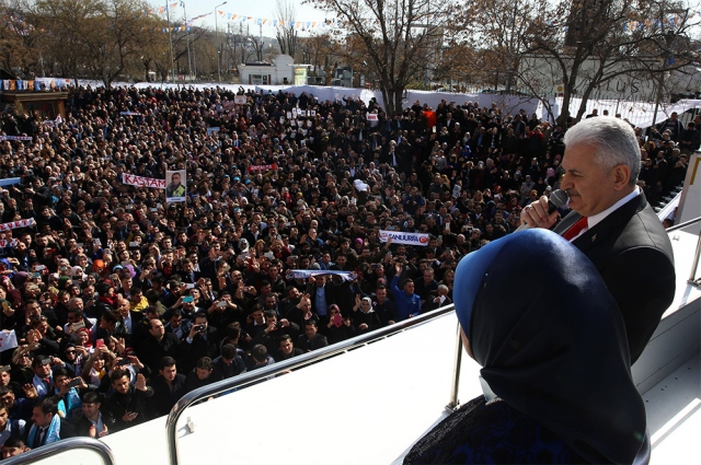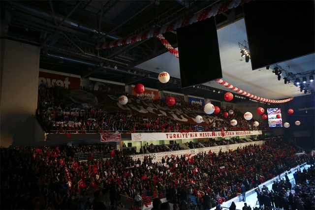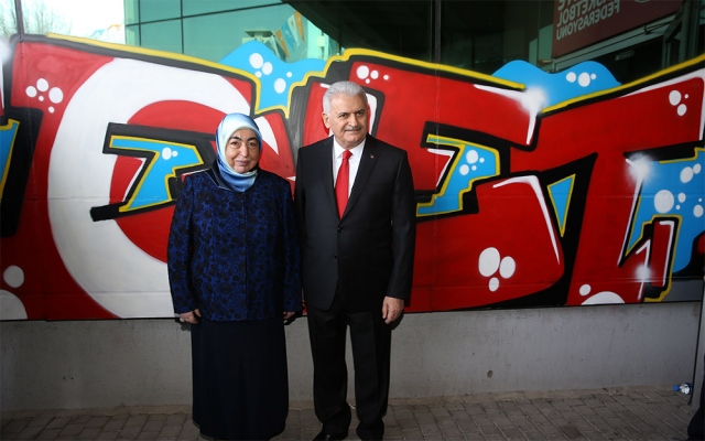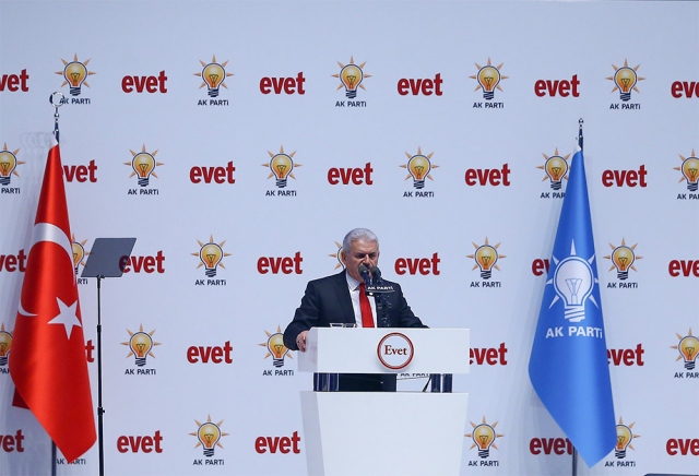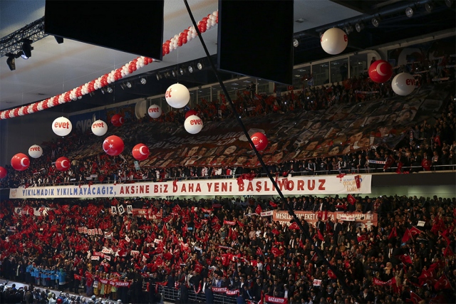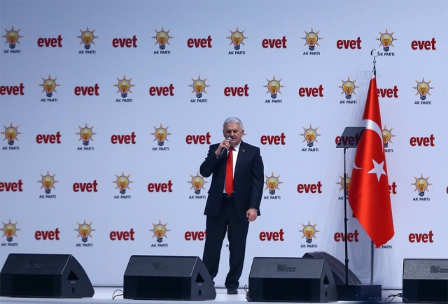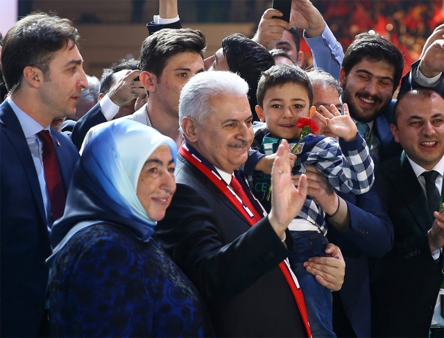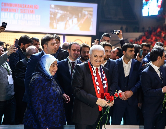 Başbakan Binali Yıldırım, Ankara Arena Spor Salonu'nda gerçekleştirilen, AK Parti referandum kampanyası tanıtım toplantısına katıldı. Vatandaşları selamladı. Başbakan Binali Yıldırım'a eşi Semiha Yıldırım da eşlik etti.