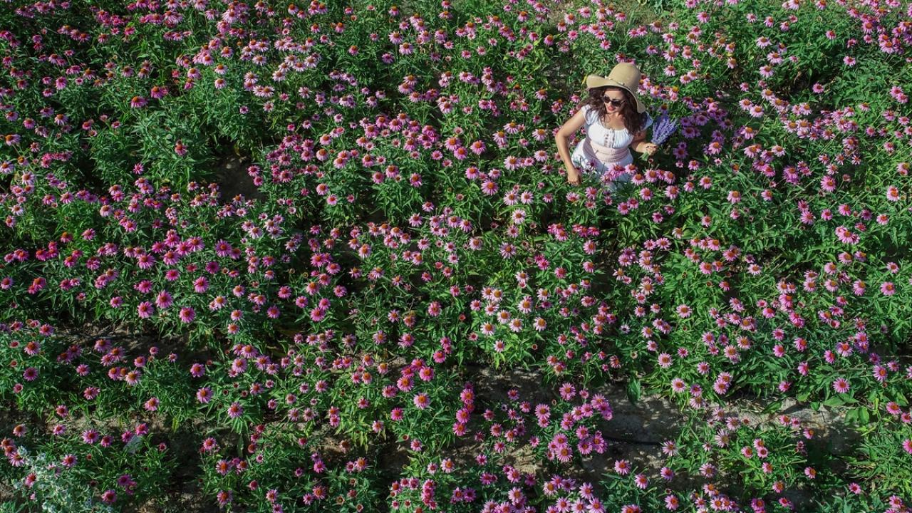 Ekinezya, civanperçemi ve lavantaların yetiştirildiği bölümü gezen ziyaretçilerin rengarenk bitkilerin arasında fotoğraf çektiği bahçede, 27 Temmuz`da hasat yapılması planlanıyor.