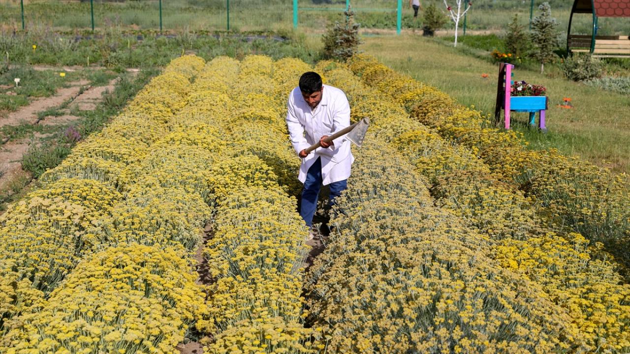 Van Yüzüncü Yıl Üniversitesi (YYÜ) Ziraat Fakültesi Tarla Bitkileri Bölümünde görevli akademisyenler, çiftçileri katma değeri yüksek olan bitki üretimine teşvik etmek amacıyla oluşturulan bahçede yetiştirdikleri tıbbi ve aromatik bitkilerin hasadına hazırlanıyor.