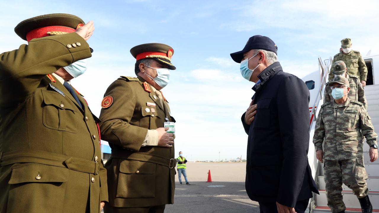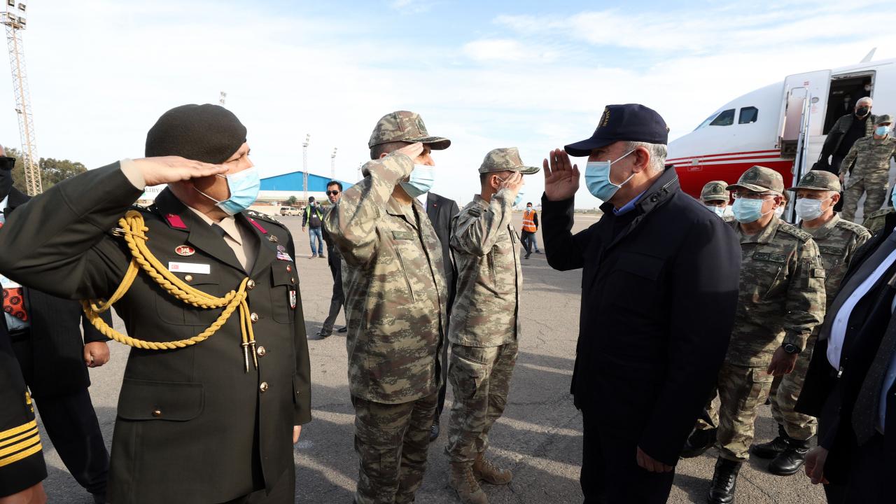 Milli Savunma Bakanı Hulusi Akar, beraberinde Genelkurmay Başkanı Orgeneral Yaşar Güler ve Kuvvet Komutanları ile başkent Trablus’a geldi. Akar ve TSK komuta kademesini Mitiga Havalimanı’nda Libyalı yetkililerin yanı sıra Türkiye’nin Trablus Büyükelçisi Serhat Aksen ile Libya Görev Grup Komutanlığı yetkilileri karşıladı.