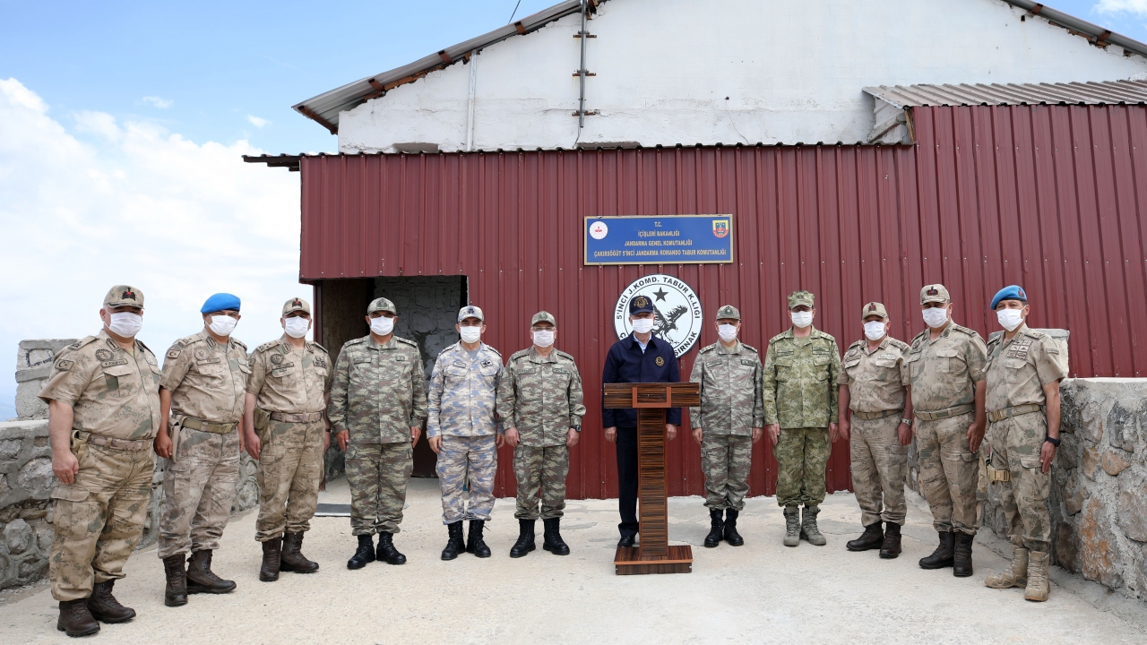 Cudi ve Gabar`ın arasında kalan, teröristle mücadele operasyonlarında önemli bir yere sahip Namaz Dağı bölgesindeki jandarma komando taburunda incelemelerde bulunan Akar, jandarma birliklerini terörle mücadeledeki başarılarından dolayı tebrik etti.