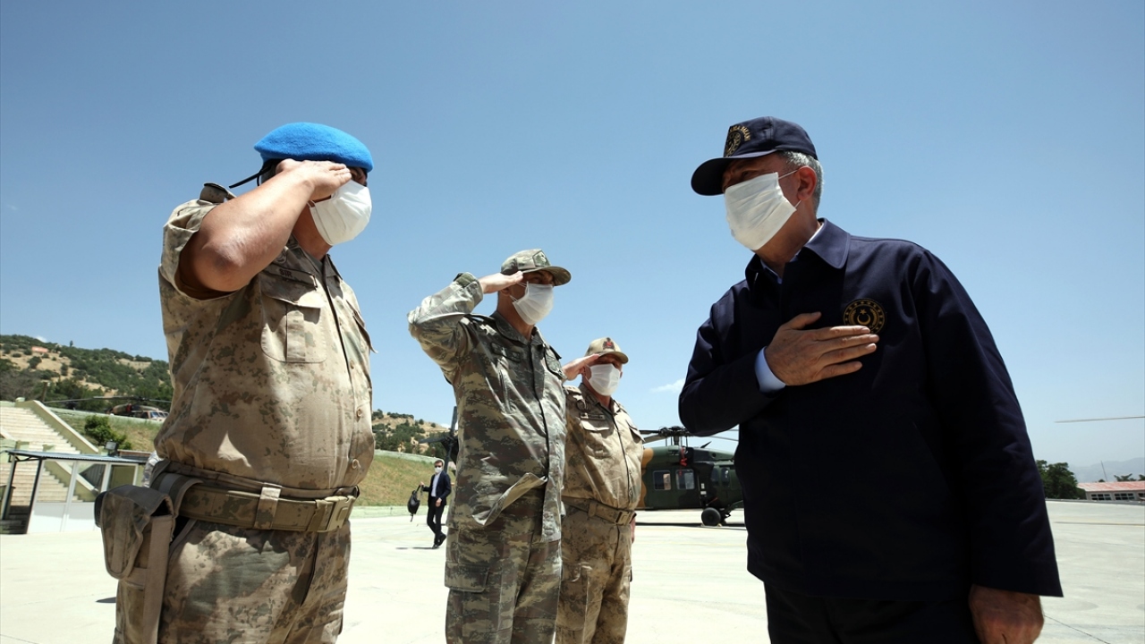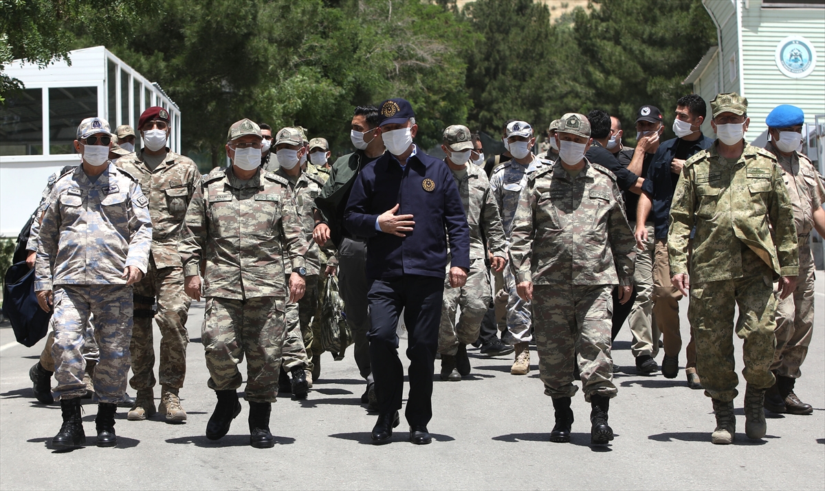 Buradan askeri helikopterlerle 23. Piyade Tümen Komutanlığına geçen Akar ve Komutanlar, sınır hattındaki birliklerin komutanları ile toplantı yaptı.