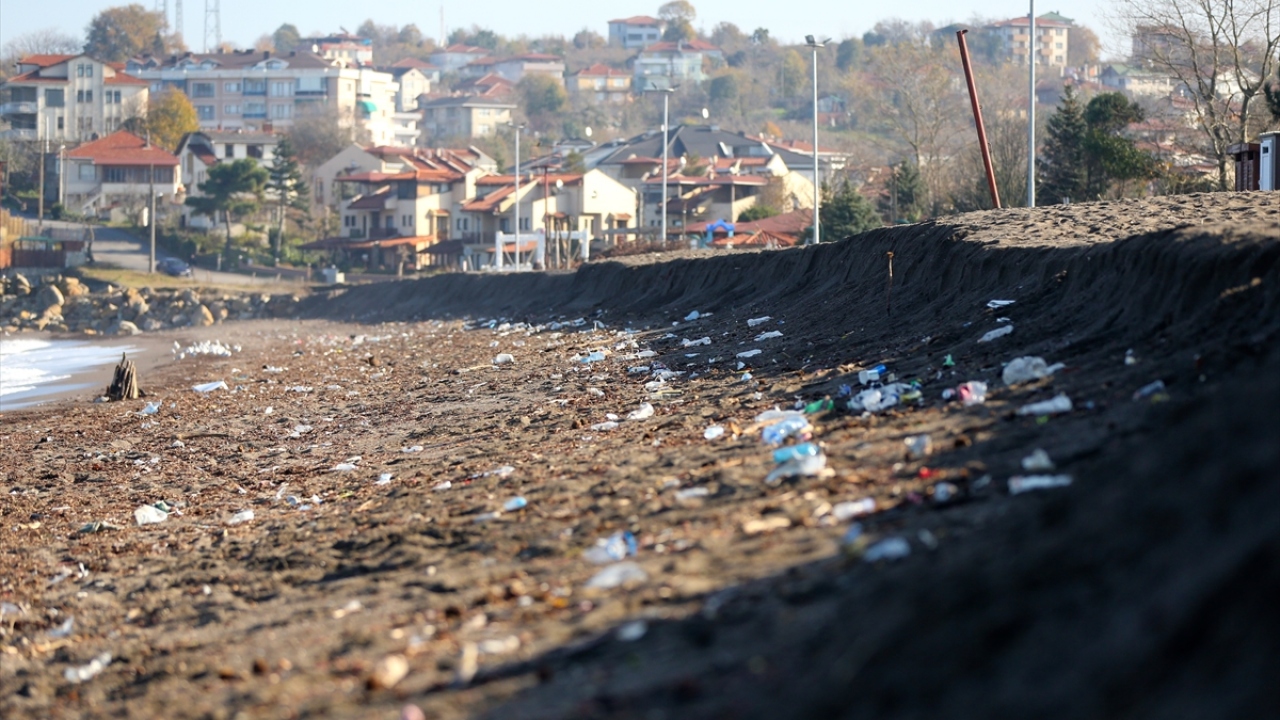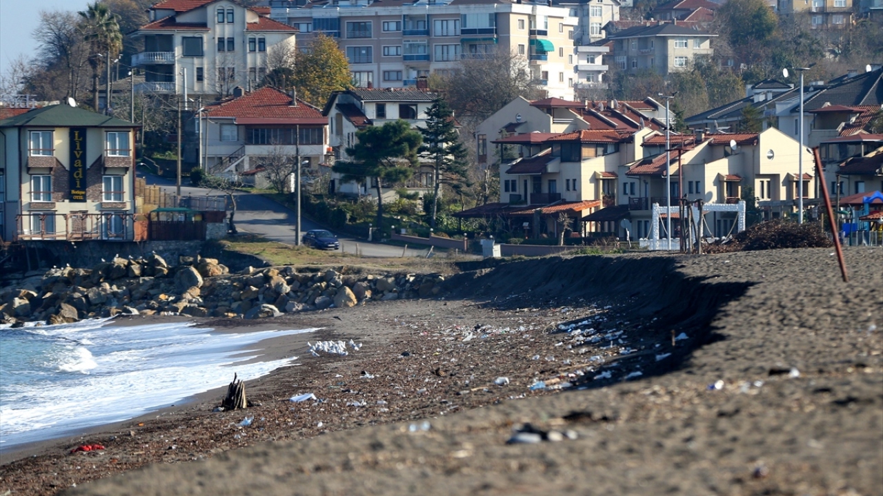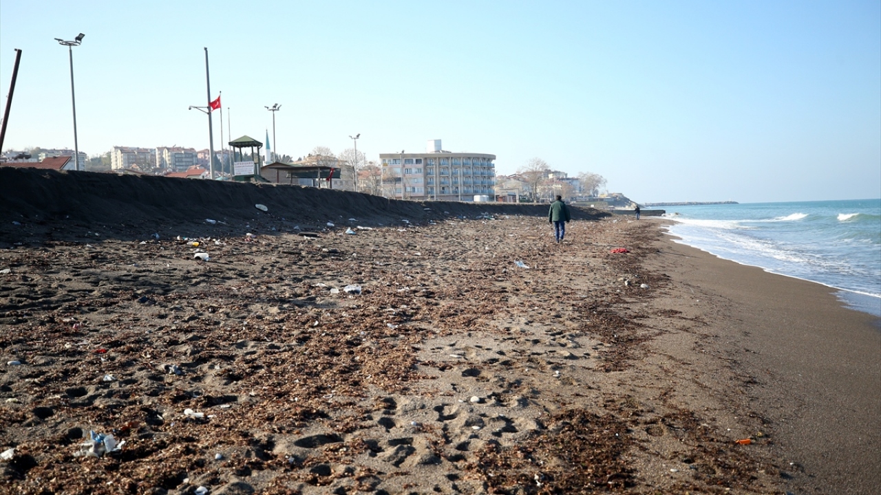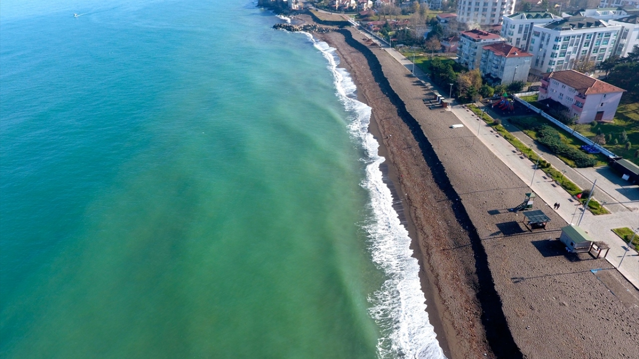 Düzce'nin Akçakoca ilçesinde, sahildeki kumun kıyıya 3 metre çekilmesi ilginç görüntü oluşturdu.