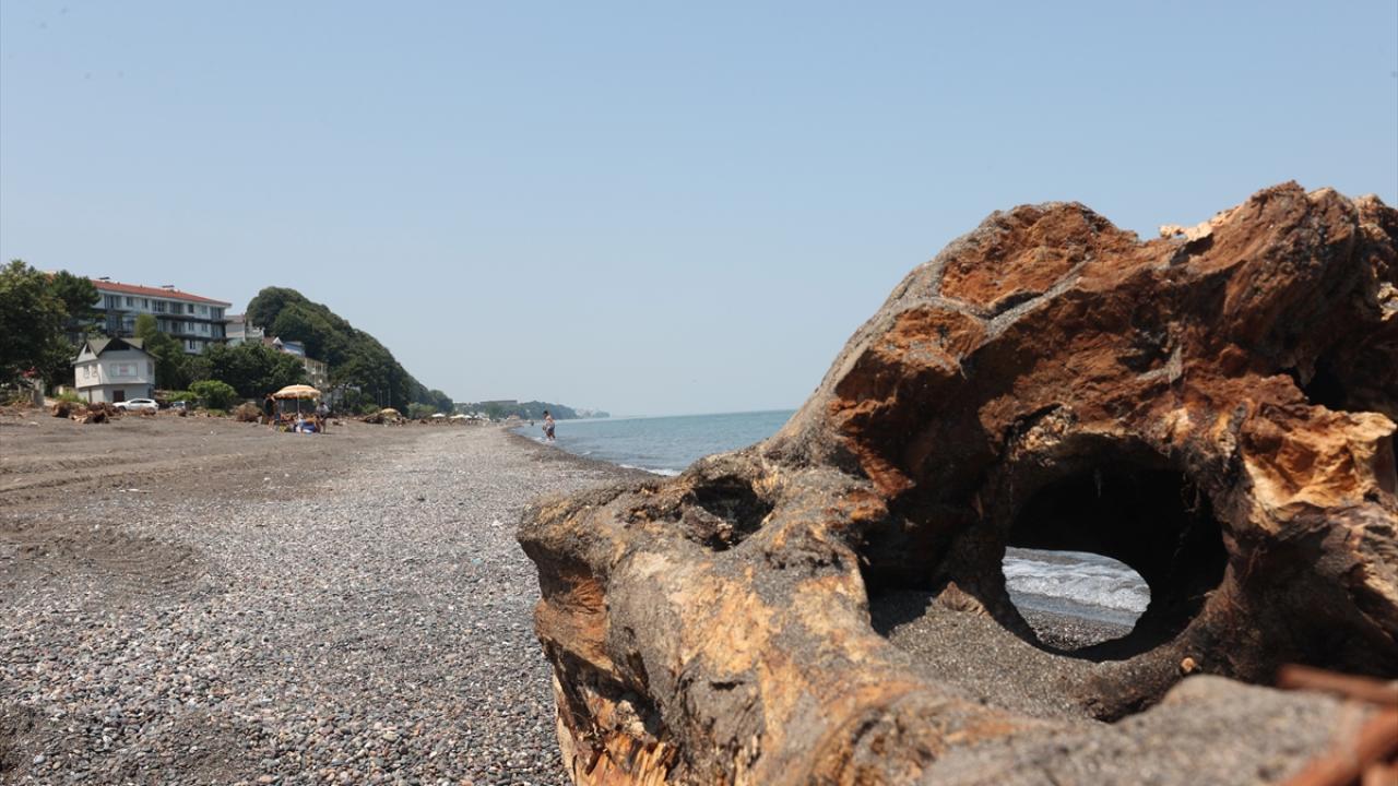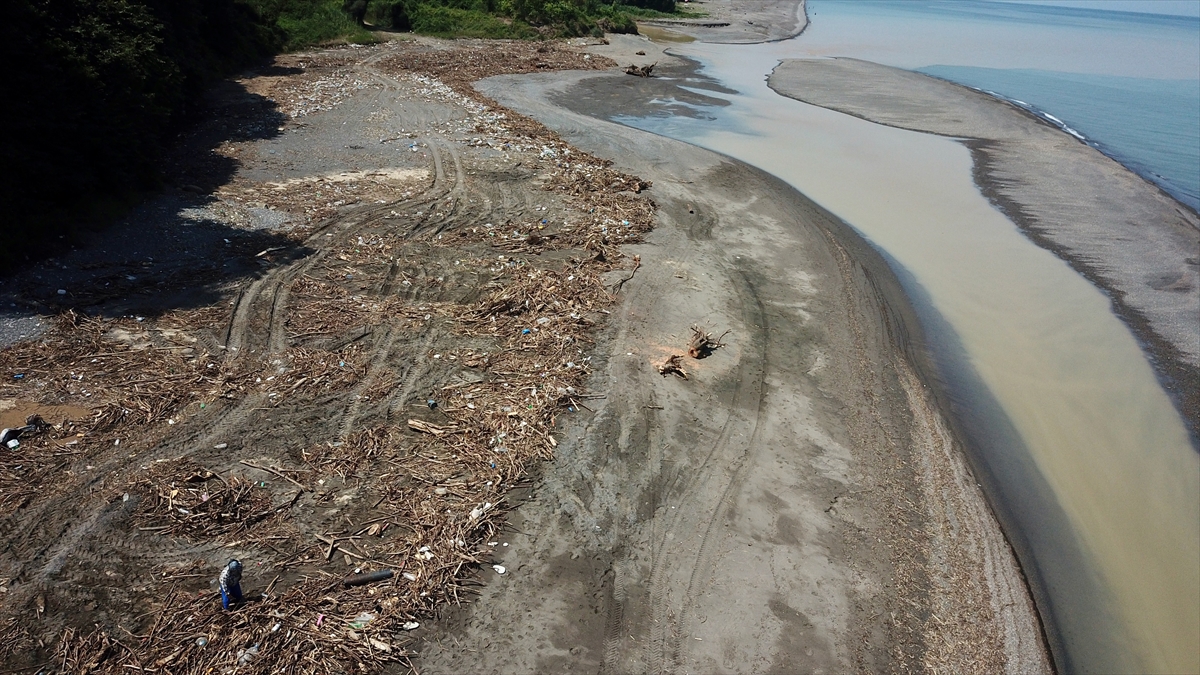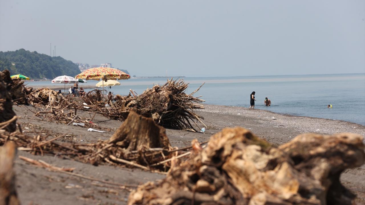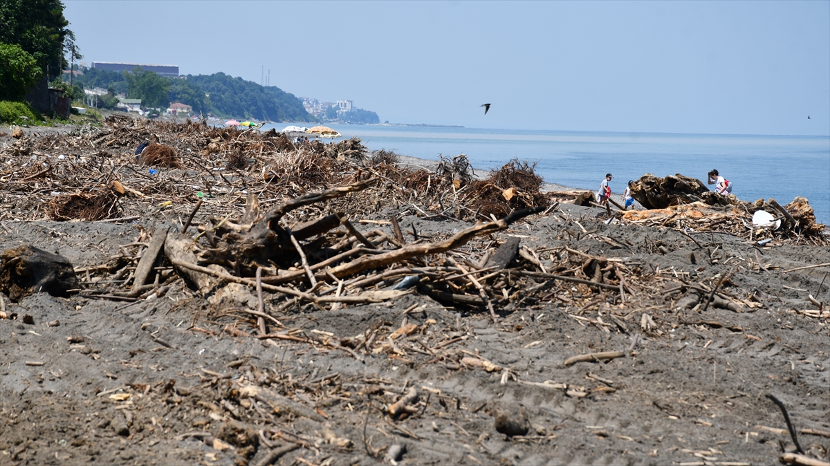 Sağanağın ardından meydana gelen sel ve taşkınlardan etkilenen Düzce'nin kıyı kenti Akçakoca'da sahiller, derelerin taşıdığı ağaç parçalarıyla kaplandı.