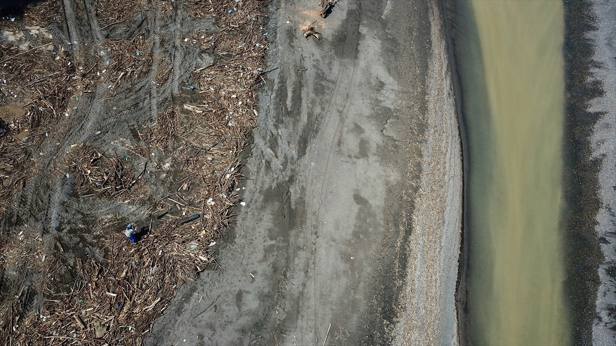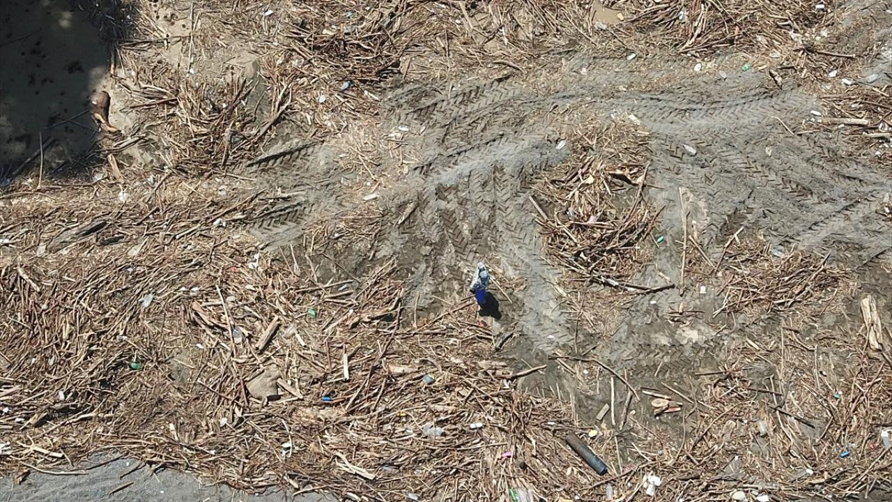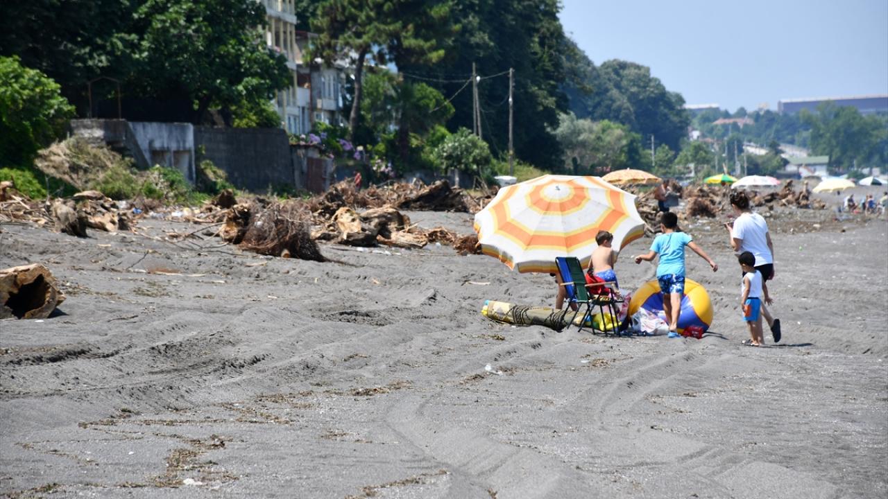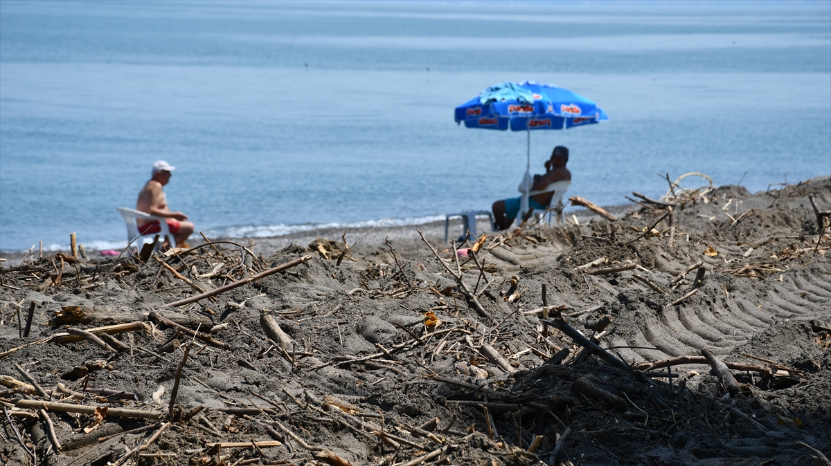 Kentte etkisini gösteren sıcak havada serinlemek isteyenler, sahil atıklarla dolu olmasına rağmen denize girerken, bazı vatandaşların selle sürüklenen odunları topladığı görüldü.