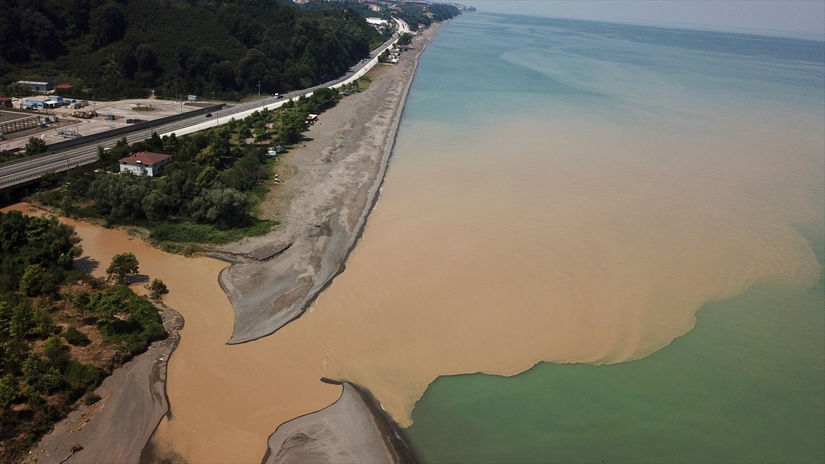 İlçedeki derelerden gelen çamurlu su, bazı yerlerde denizin rengini kahverengiye dönüştürdü.