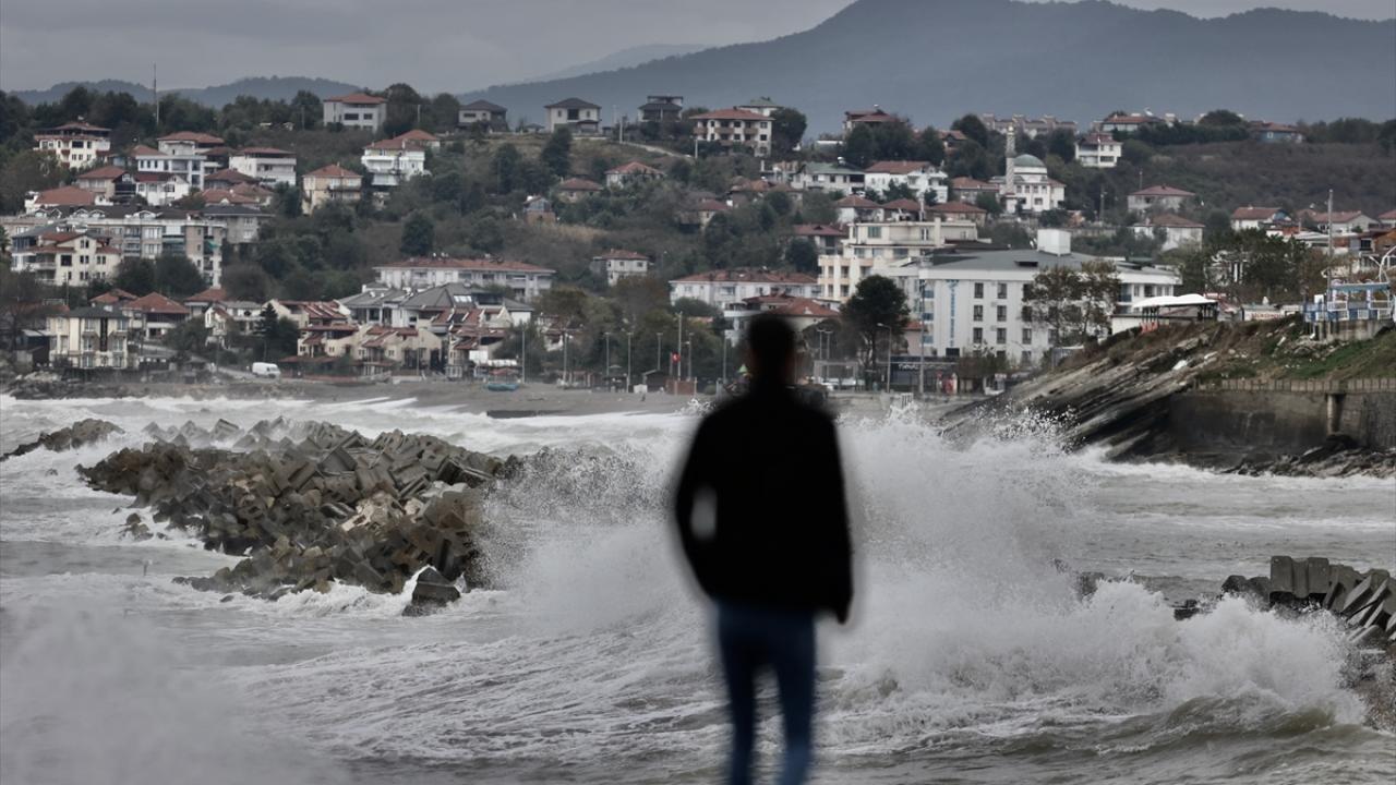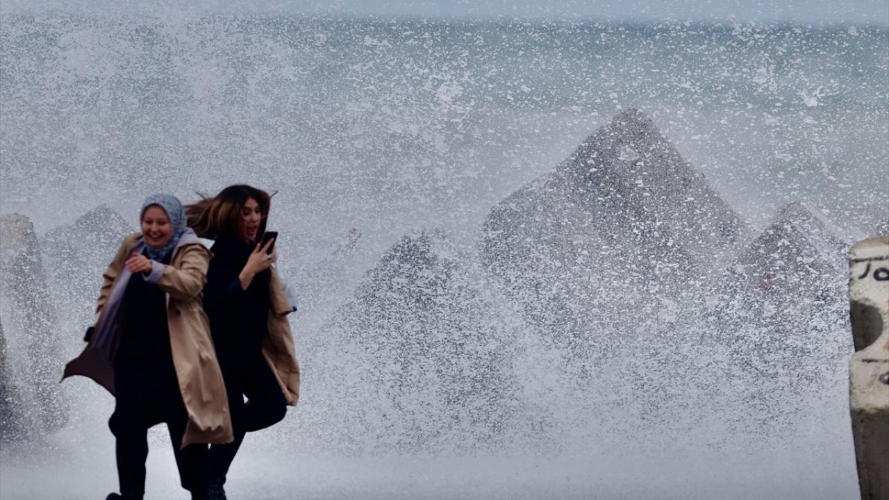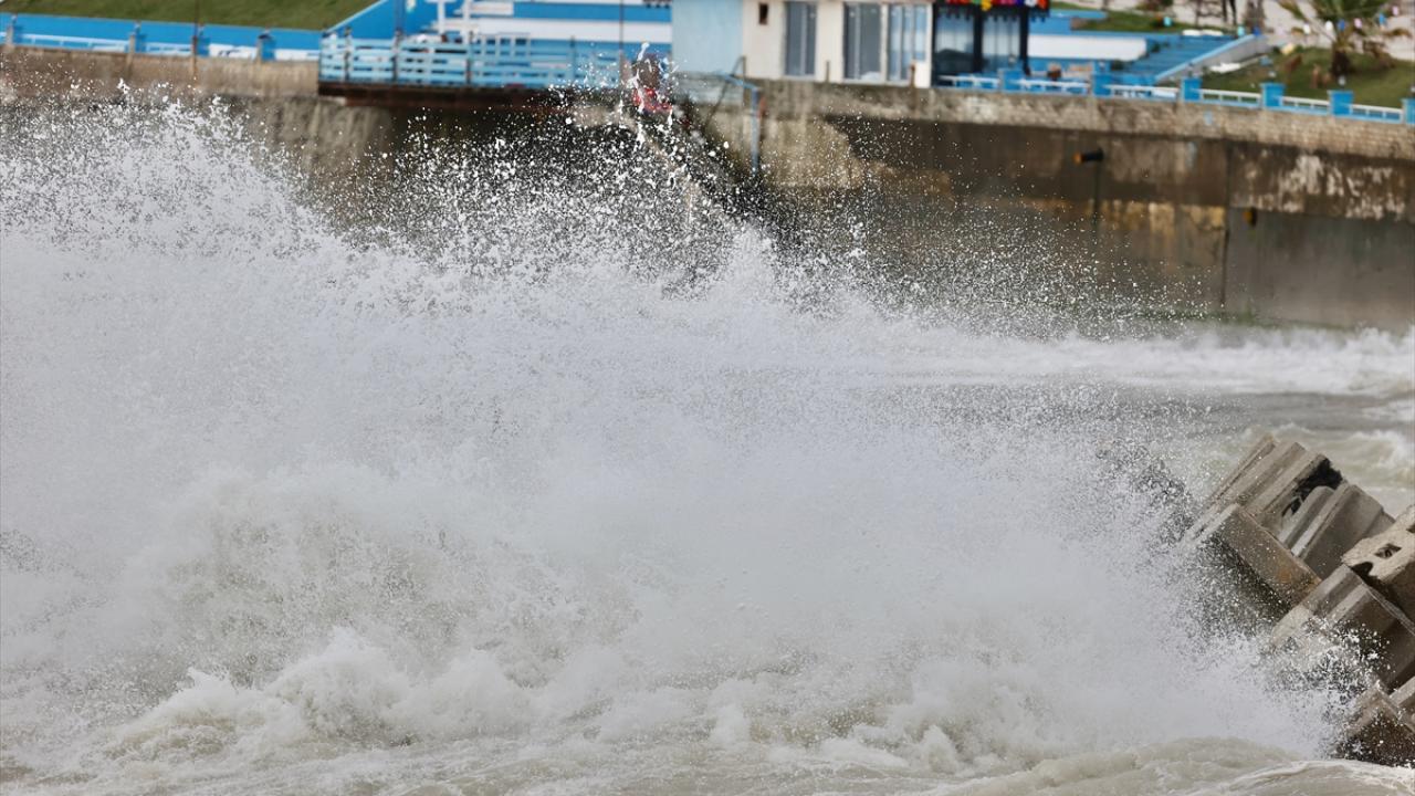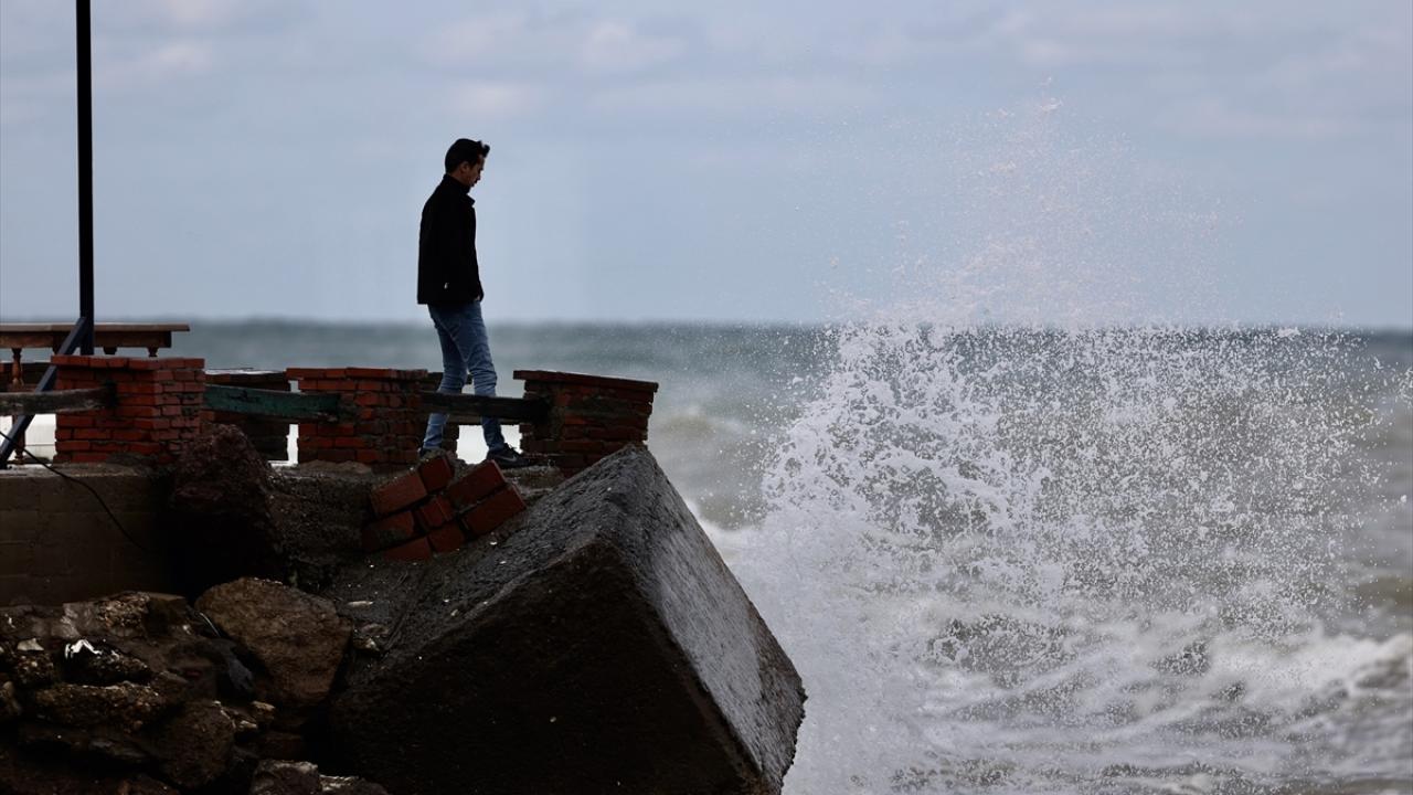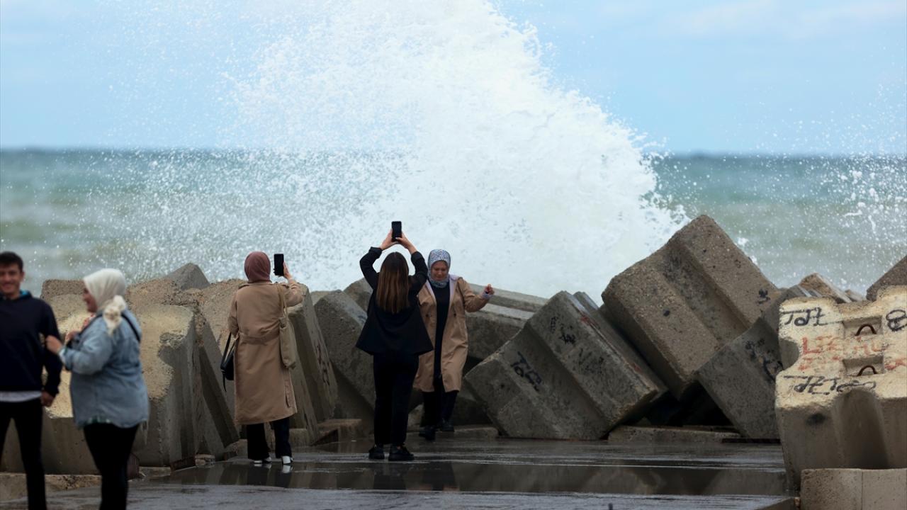 Yer yer yağmurun da etkili olduğu sahil kentinde, 5 ila 7 kilometre hızla esen rüzgar dolayısıyla dalga boyu 3 metreyi aştı.