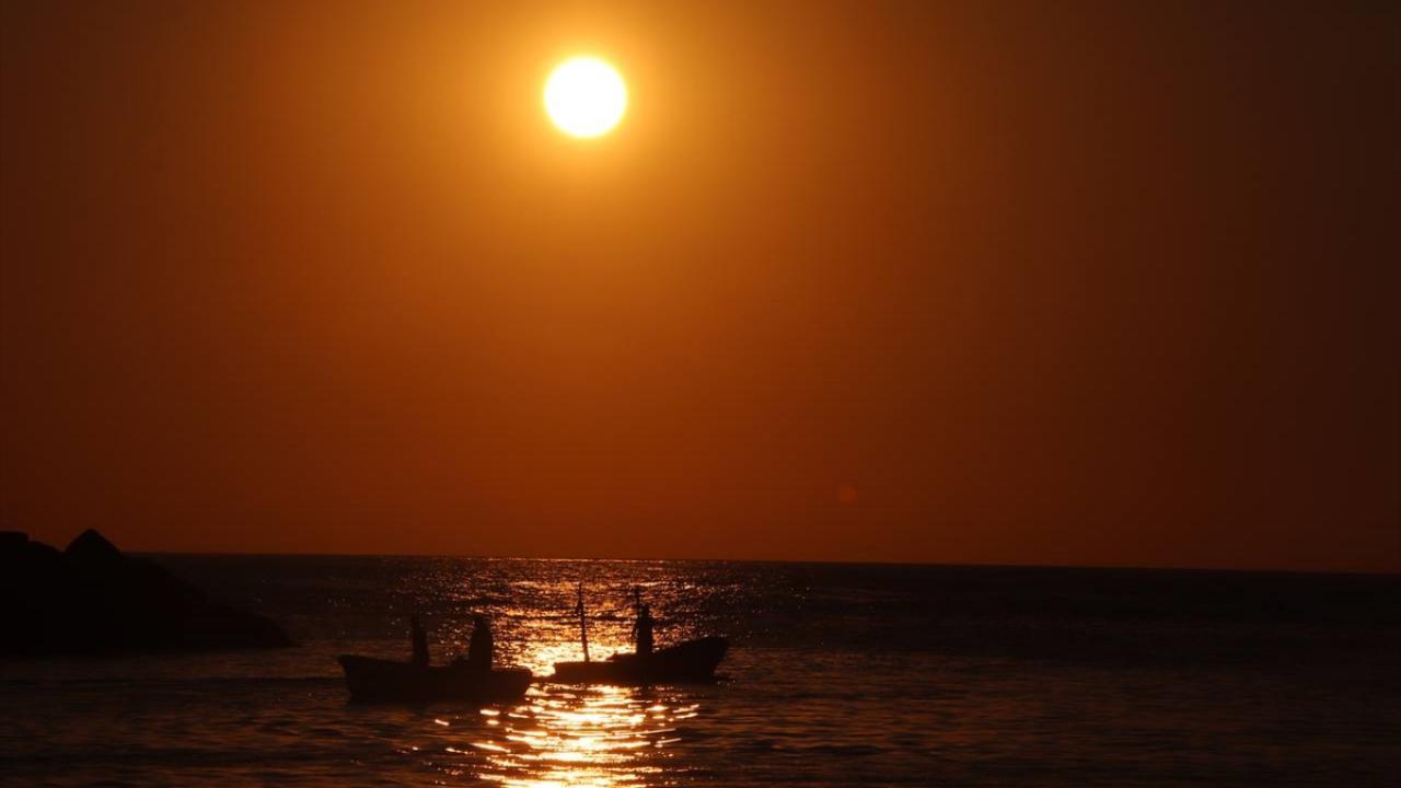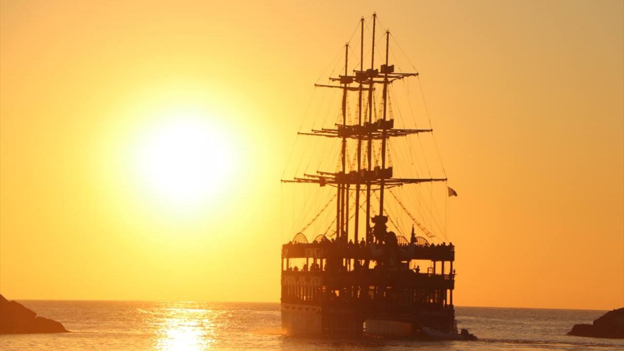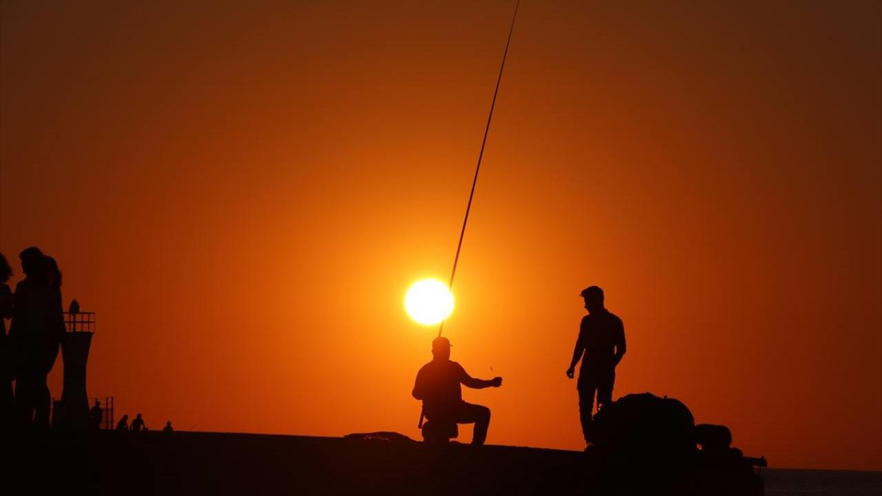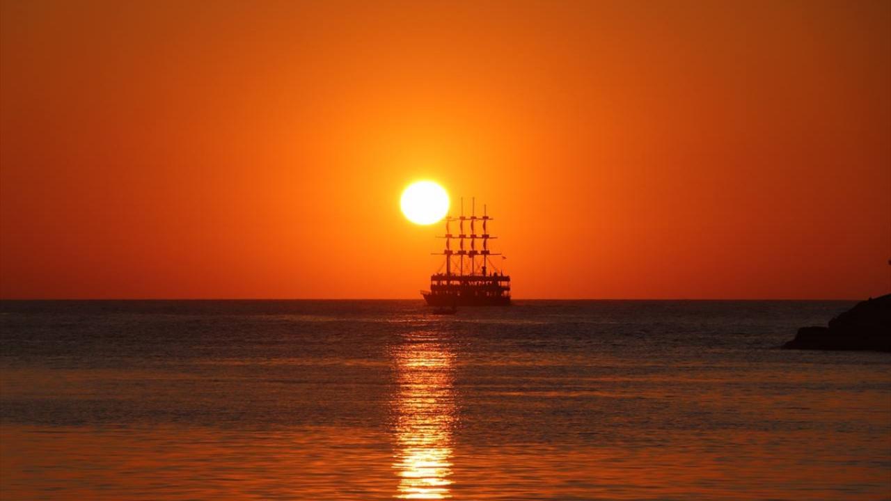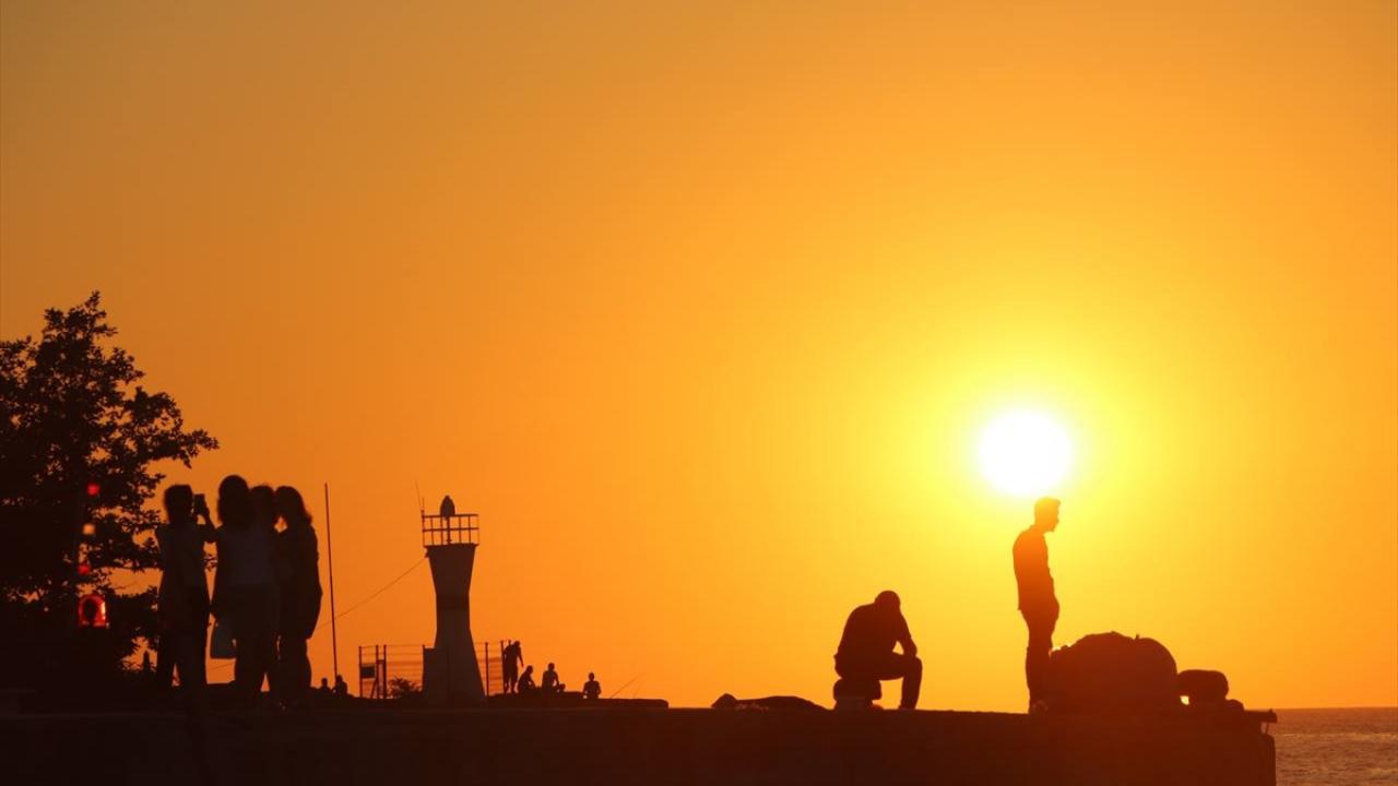 Kartpostallık görüntülerin oluştuğu gün batımını izleyenler, fotoğraf çekerek anı ölümsüzleştiriyor.