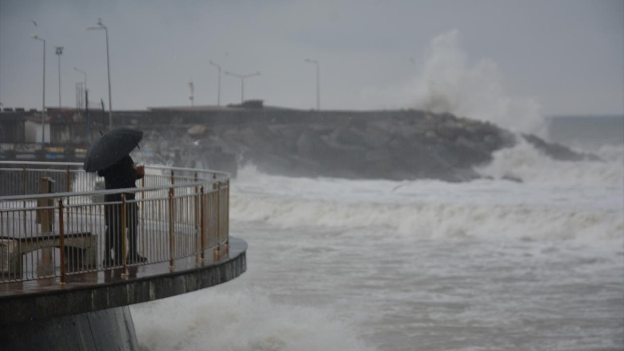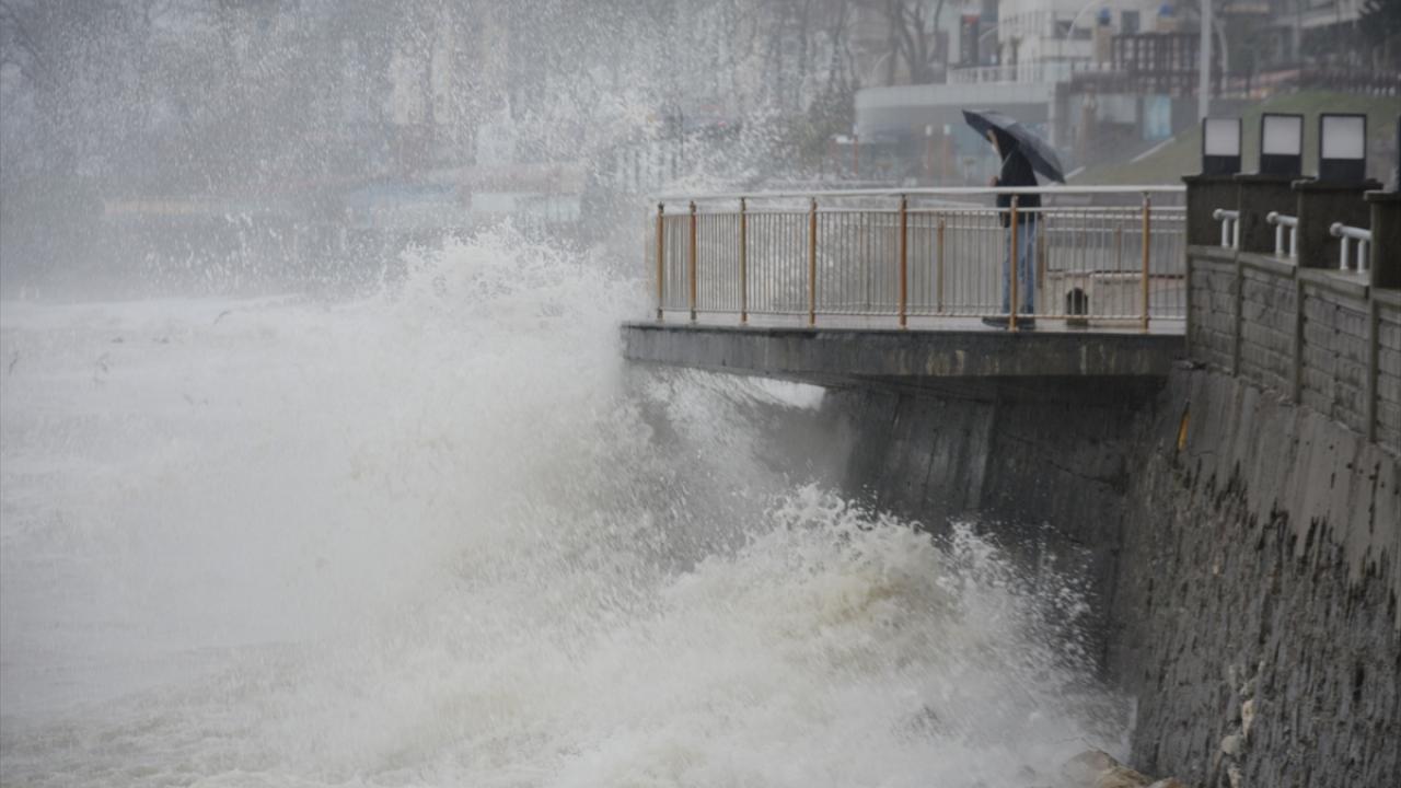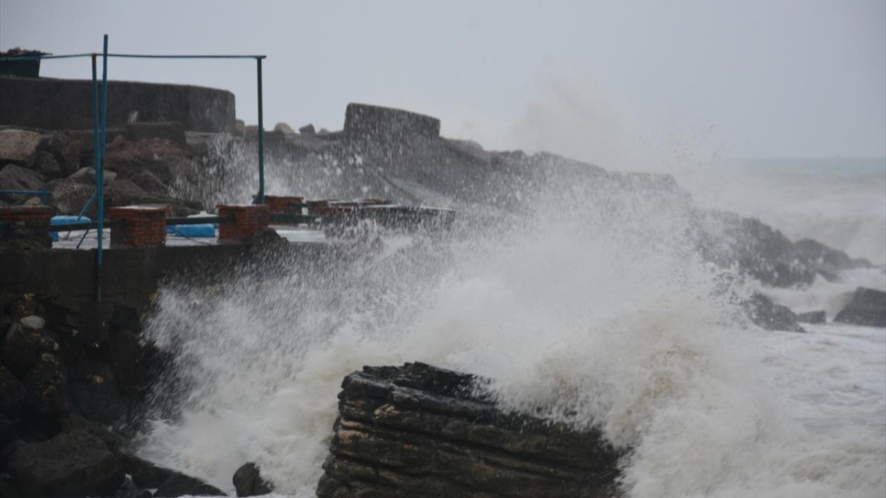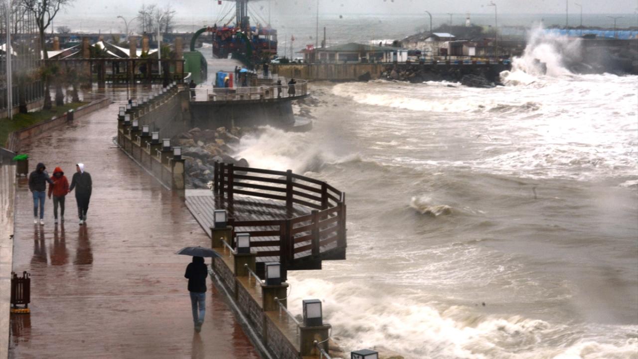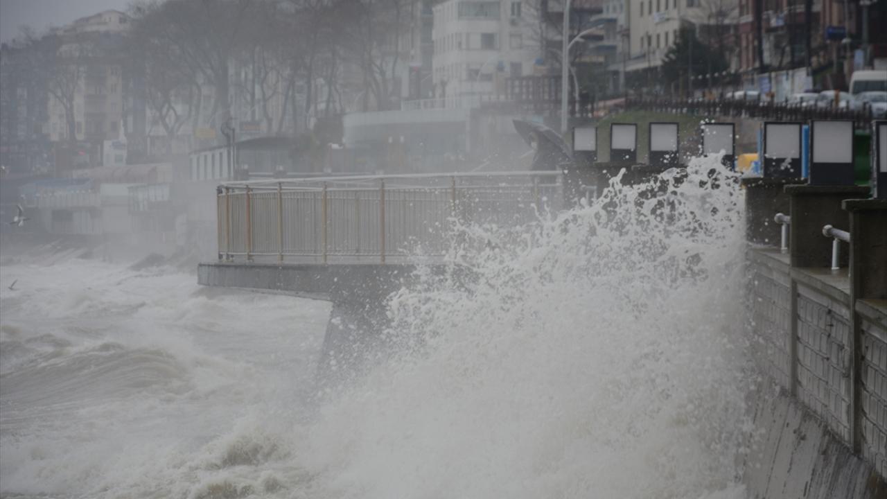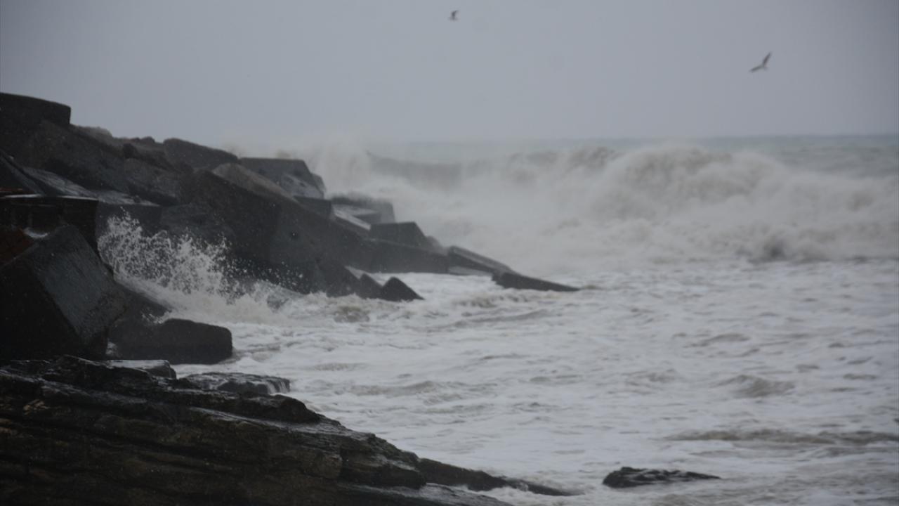 Düzce'nin Akçakoca ilçesinde rüzgar nedeniyle denizdeki dalga boyu 5 metreye ulaştı.