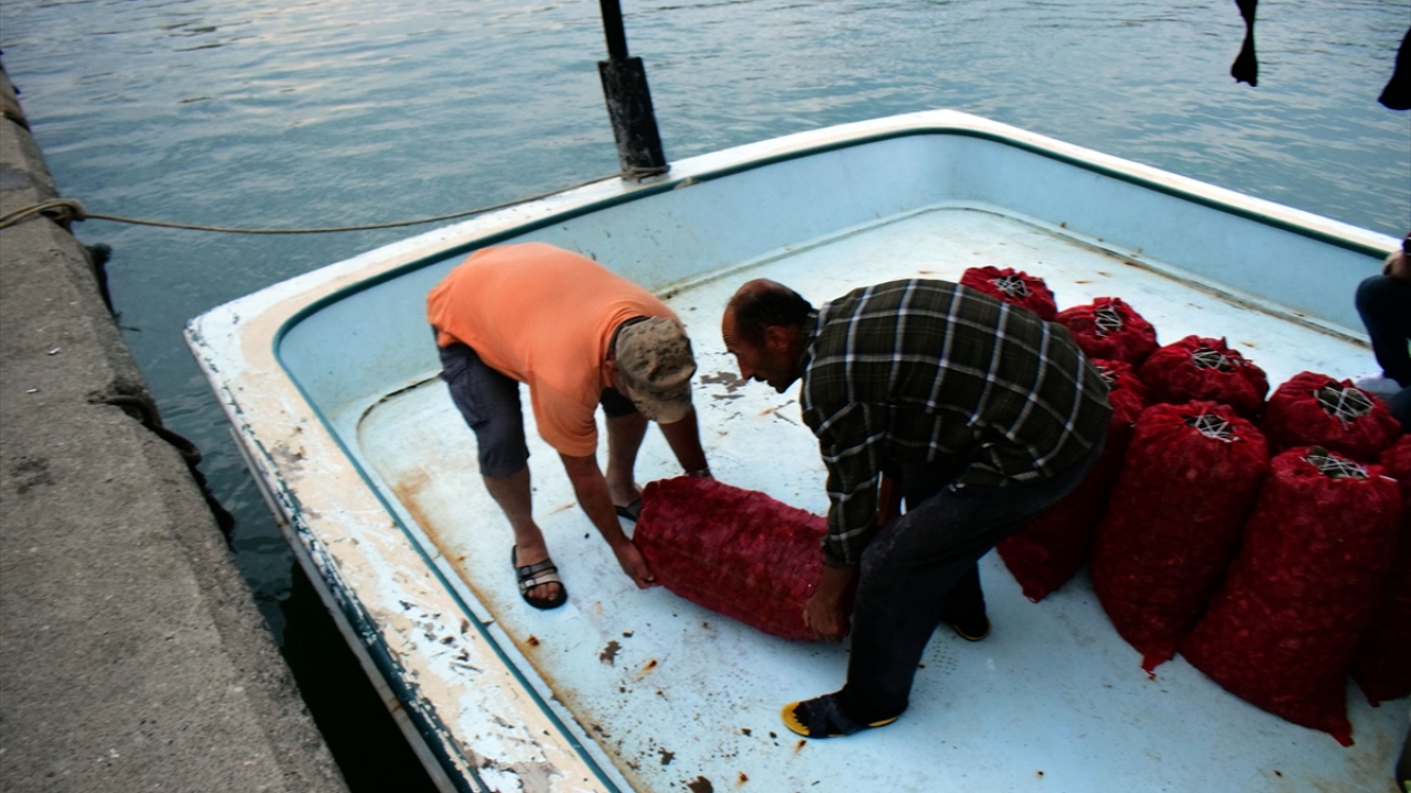 Belirlenen kotanın dışına çıkmadan avcılık yapan balıkçılar, akşam saatlerinde limanda alıcısı hazır bulunan salyangozları kamyonlara yüklüyor.