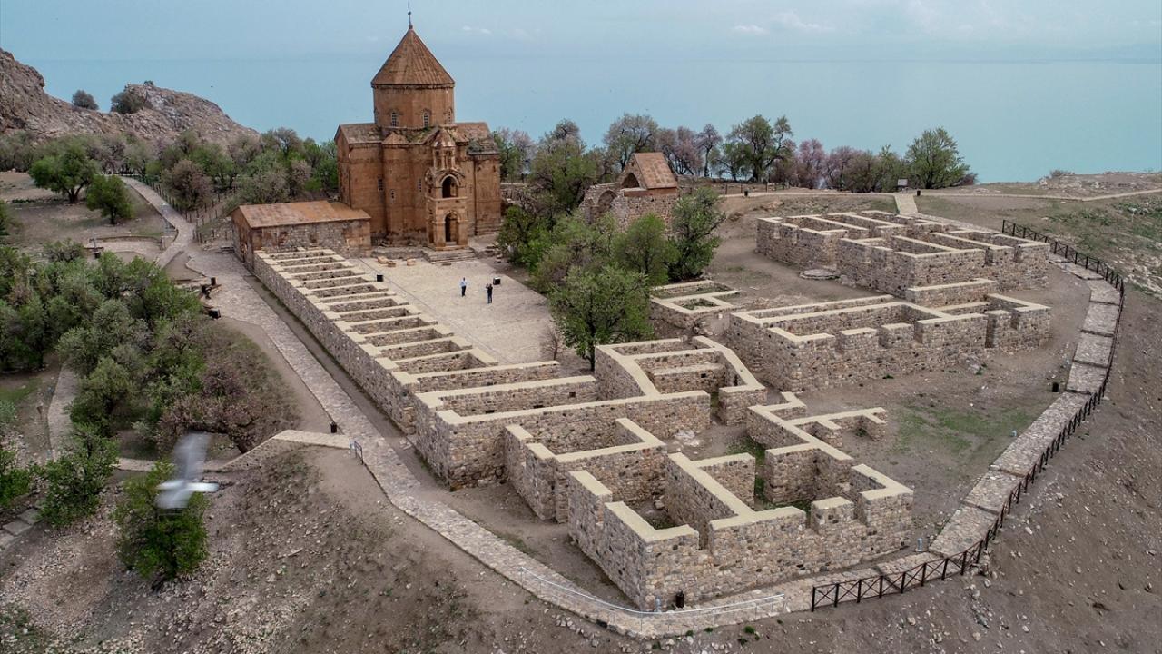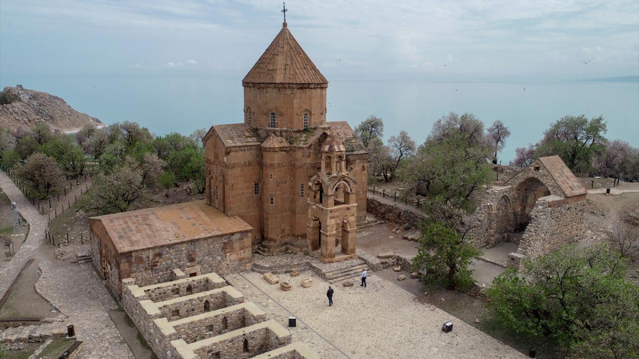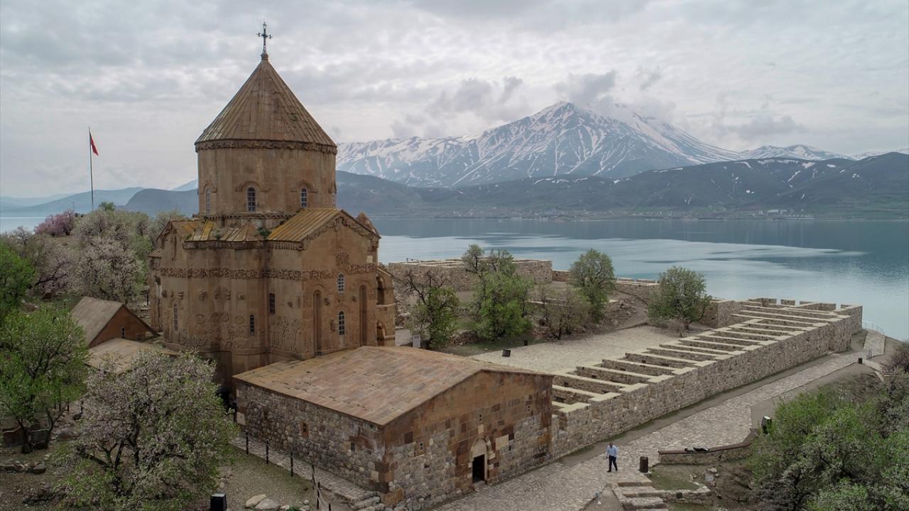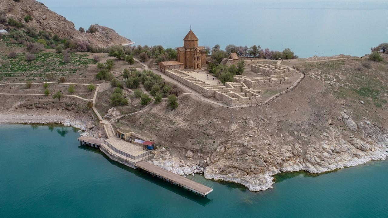 Gevaş ilçesinden 20 dakika süren tekne yolculuğunun ardından ulaşılan ada, Artos Dağı`nda henüz erimeyen kar örtüsü ve badem ağaçlarının oluşturduğu renk cümbüşü ile güzelliğine güzellik katıyor.