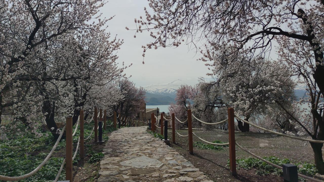 Van'da, her yıl binlerce yerli ve yabancı turistin ziyaret ettiği Gevaş ilçesindeki Akdamar Adası, ilkbaharda açan badem ağaçlarıyla güzel manzaralar oluşturdu.