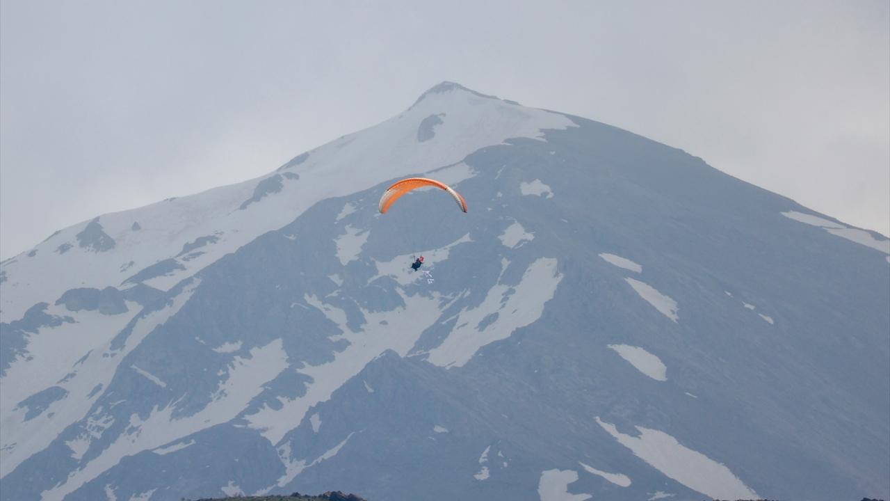 Ardından Türk bayraklarıyla süslenen tekne ve feribotlarla adaya taşınan ziyaretçiler, Artos Dağı eteklerinden havalanarak adanın karşısındaki göl kıyısına iniş yapan yamaç paraşütü tutkunlarının gösterilerini izledi.