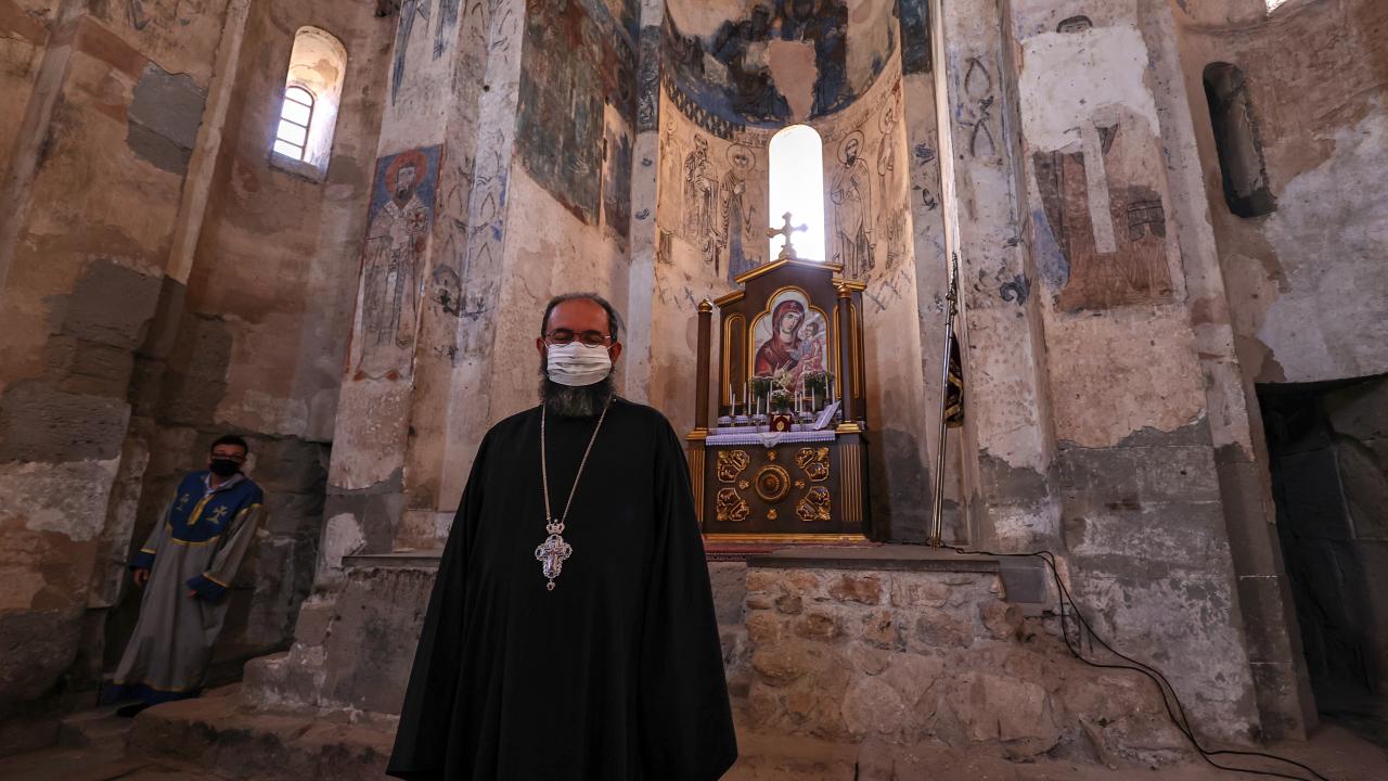 Koronavirüs tedbirleri nedeniyle sınırlı sayıda kişinin alındığı adada Türkiye Ermenileri Patrikliği Genel Sekreteri ve Ruhani Meclis Başkanı Başrahip Tatul Anuşyan, beraberindeki din adamları ile adaya geldi.