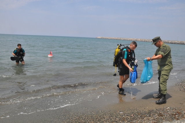 Akdeniz'e kıyısı bulunan 21 ülkede eş zamanlı başlayan "Akdeniz'i temizleyelim- Clean Up The Med" kampanyasının Türkiye ayağında, Hatay'daki Dörtyol ilçesi kıyısında dalgıçlar temizlik çalışması yaptı.