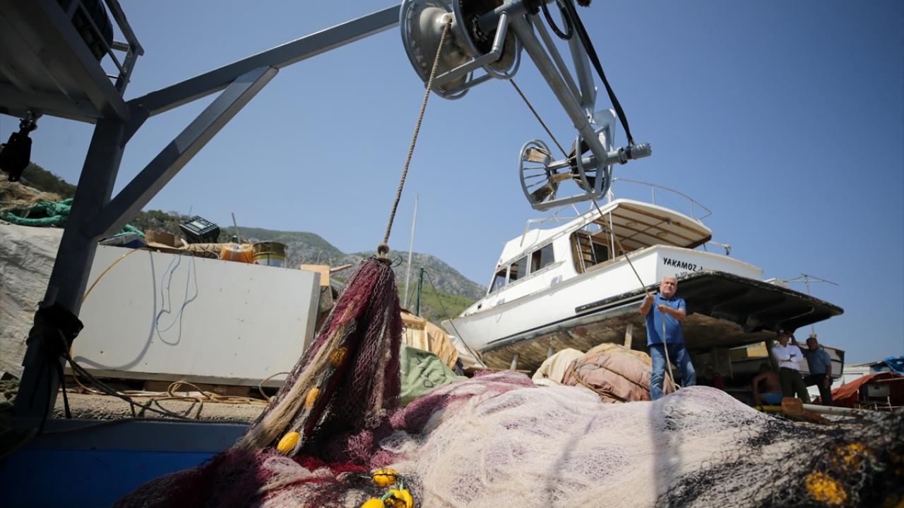 Hazırlık sürecine devam eden Akdenizli balıkçılar, bakım ve onarımdan geçirdikleri ekmek teknelerini suya indirmeye başladı.