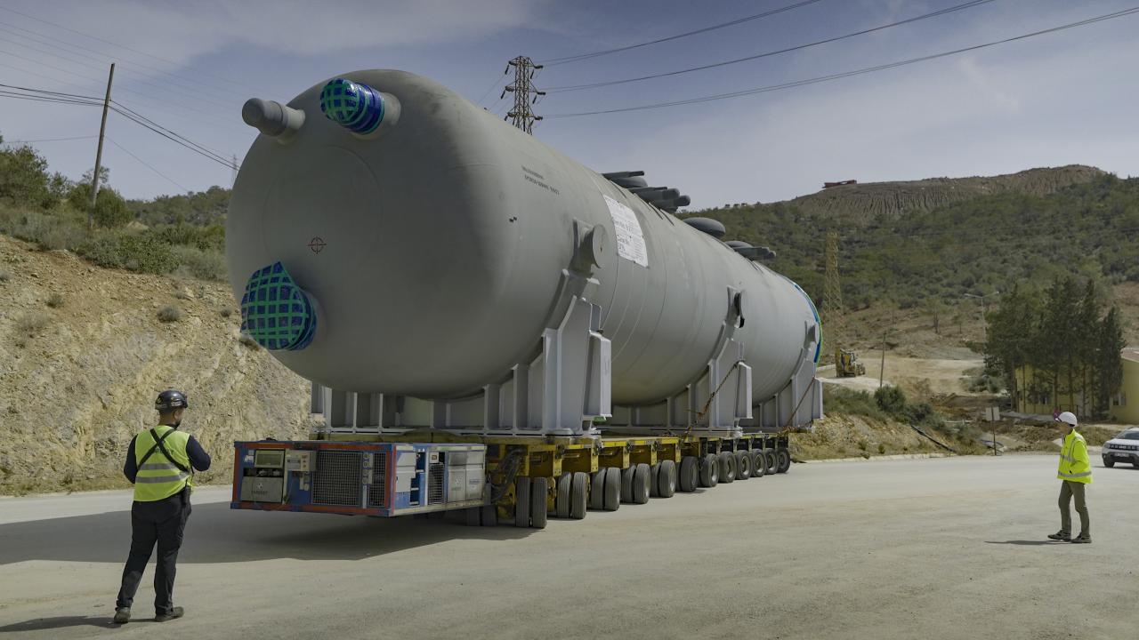 Uzmanlar daha sonra tankı, paletli vinçle türbinin bakım seviyesine taşıdı. 259 ton ağırlığında ve 40 metre uzunluğunda kalın duvarlı kap olan besleme suyu depolama tankı, büyük boyutundan dolayı yük taşıma ekipmanlarıyla parçalar halinde götürüldü.