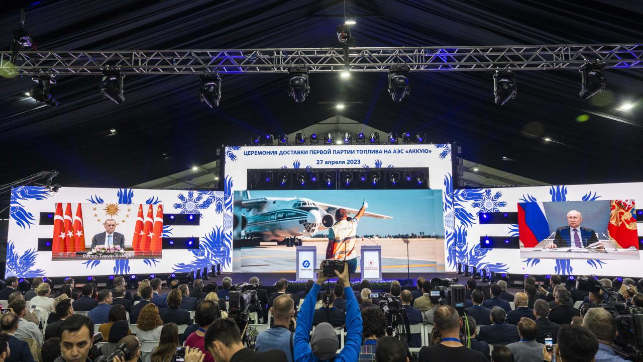 CGTN, törene Cumhurbaşkanı Erdoğan`ın yanı sıra, Putin ve Uluslararası Atom Enerjisi Başkanı Rafael Grossi`nin katıldığına dikkati çekti.