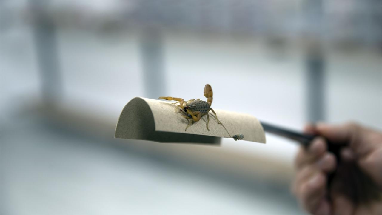 Aydın'ın Kuşadası ilçesinde, ofisinde doğal yaşamlarına uygun alan oluşturup 3 yıl akrepleri inceleyen girişimci Hakan Ören, kurduğu tesiste "akrep zehri üretimine başladı.