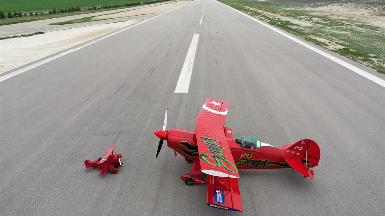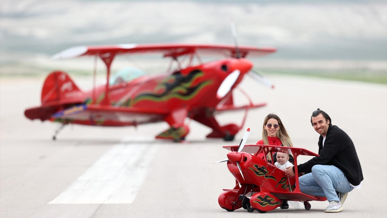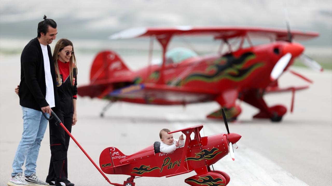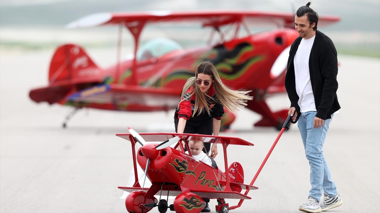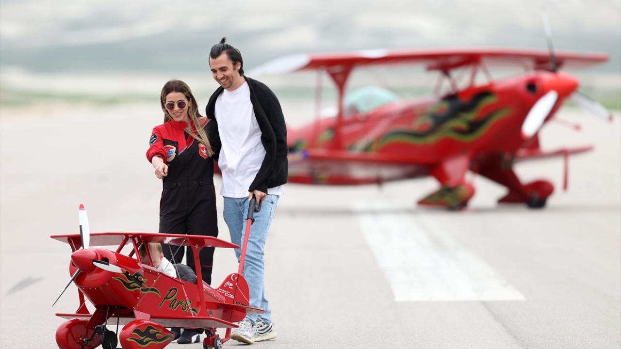 Uçuş öncesinde Pars ile ilgilenen Semin Öztürk Şener, daha sonra oğlunu babasına teslim edip, uçağıyla akrobasi antrenmanı yapıyor.