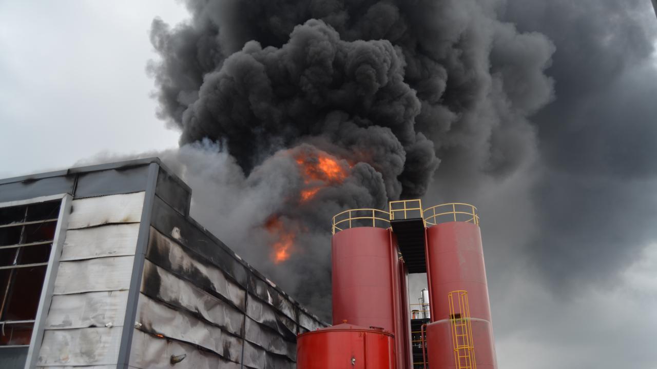 Aksaray'da atık yağ geri dönüşüm fabrikasında çıkan yangın kontrol altına alındı.