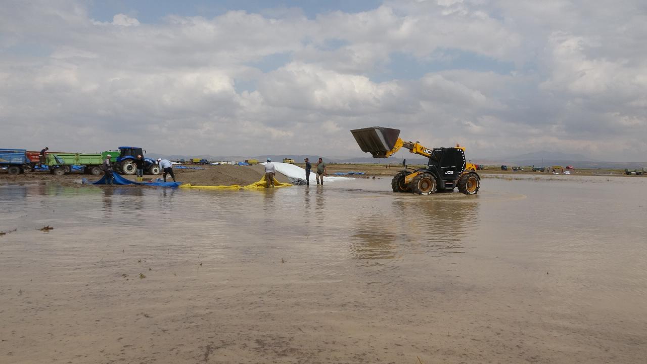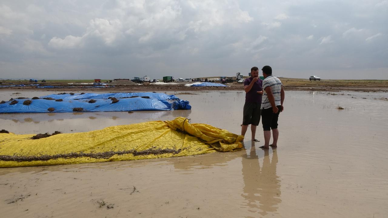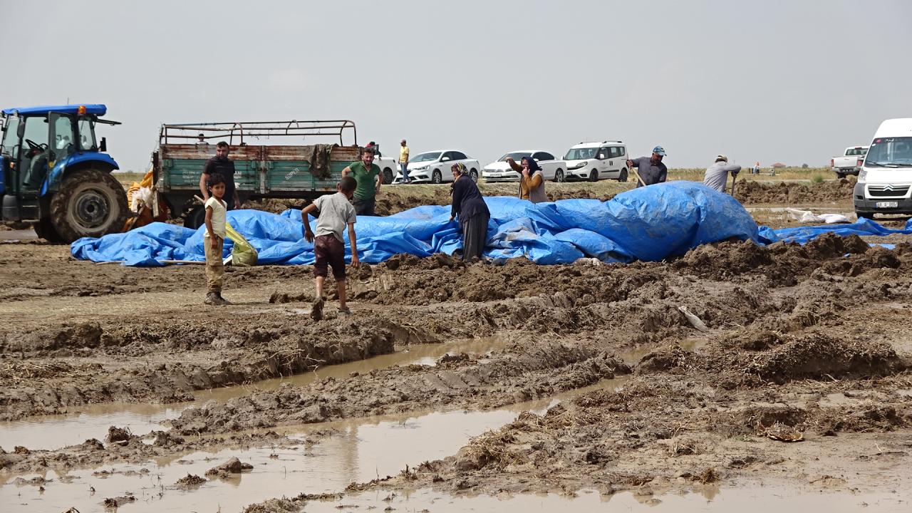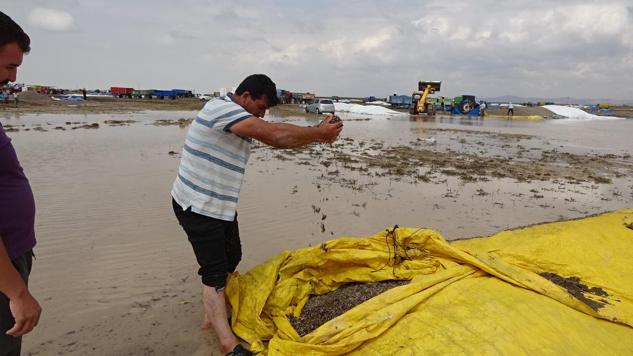 Ayrıca Yeşiltepe beldesinde, çiftçilerin kuruması için harman yerine serdiği 600 ton çerezlik ayçiçeği, su altında kaldı.