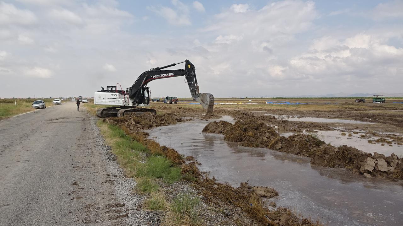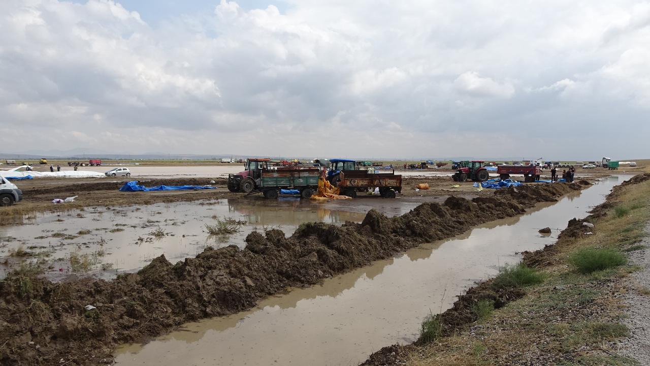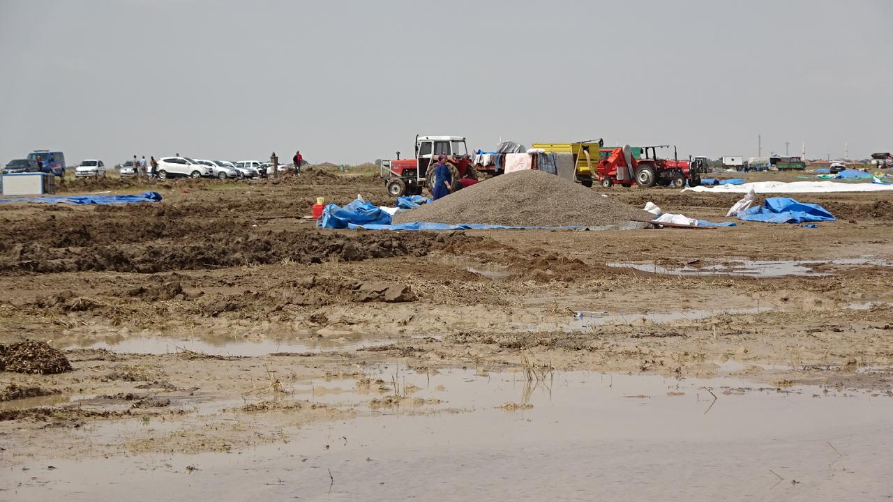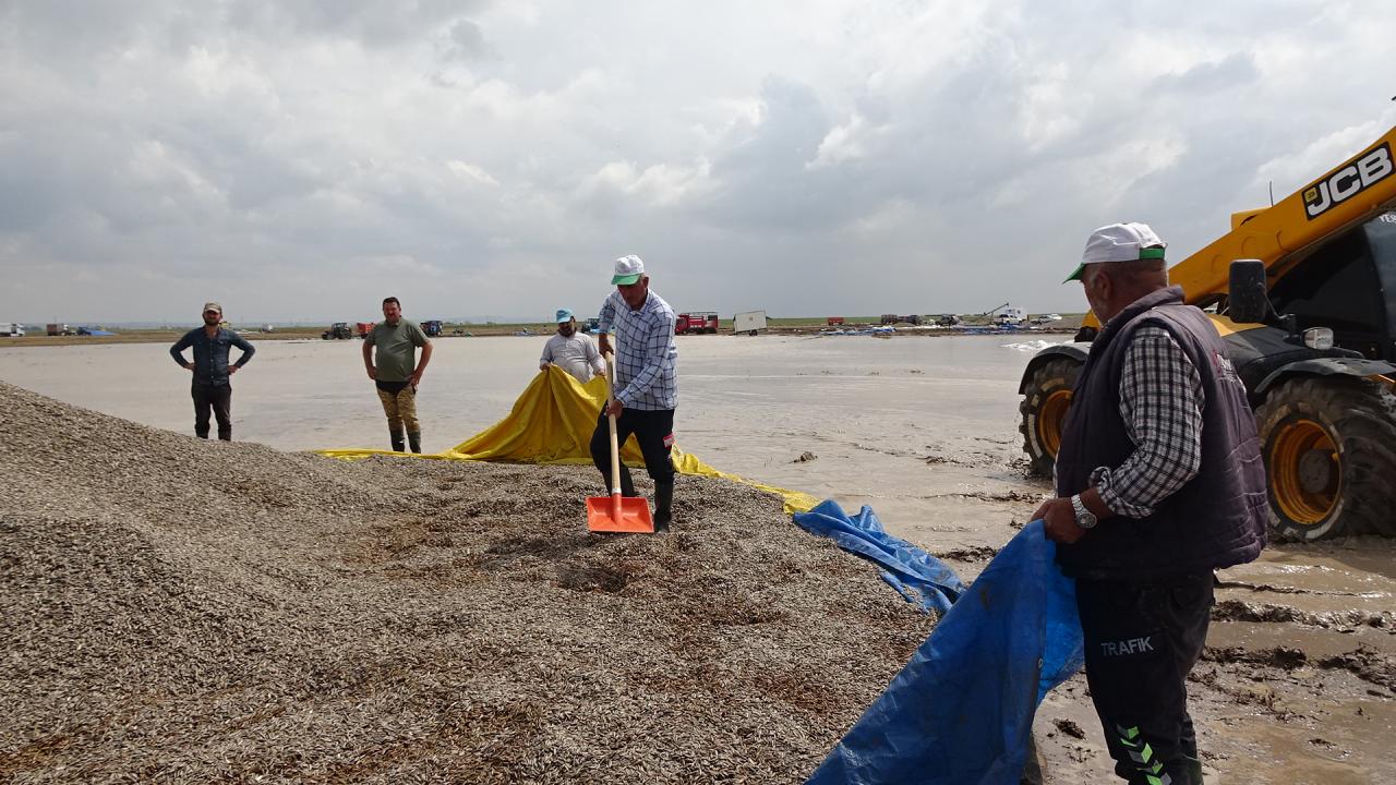 Ayrıca Yeşiltepe beldesinde, çiftçilerin kuruması için harman yerine serdiği 600 ton çerezlik ayçiçeği, su altında kaldı.