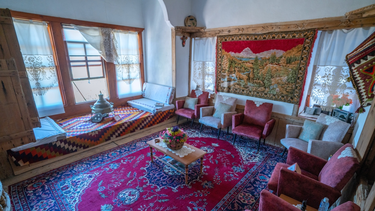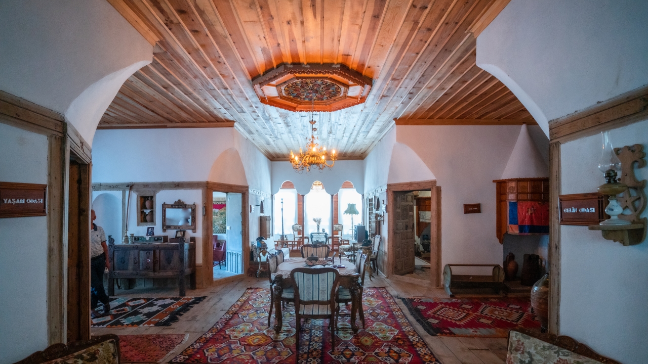 Dönemin mobilya ve eşyalarının kullanıldığı salon, mutfak, misafir ağırlama ve yatak odalarında günlük hayata dair her türlü ayrıntıyı gözlemlemek mümkün.