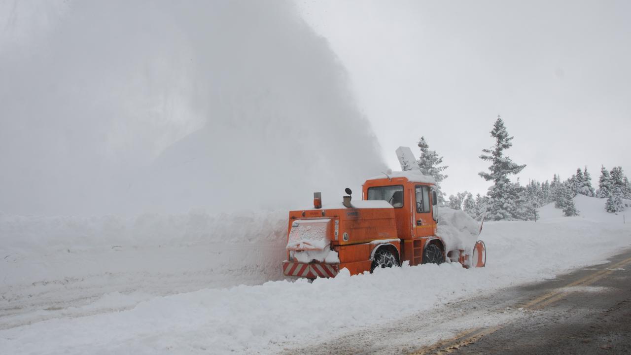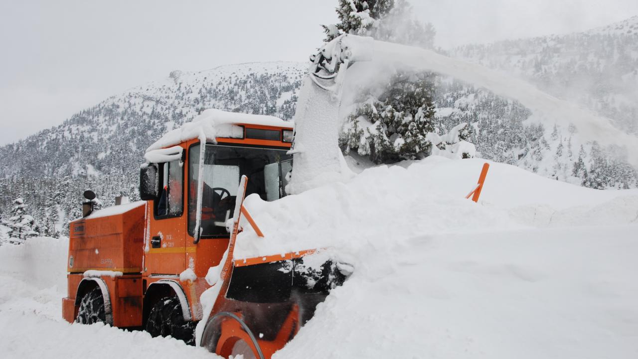Antalya`yı Konya`ya bağlayan Akseki-Seydişehir karayolunda bin 825 metre rakımlı Alacabel`de Karayolları ekipleri kar temizleme çalışması yapıyor.