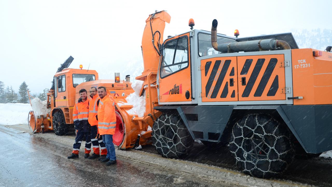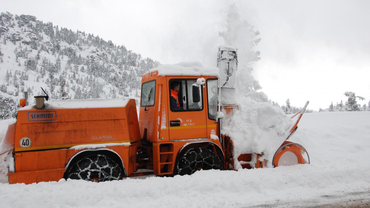Yol kenarında karın kalındığı ise 2 metreye yaklaştı. Antalya`yı Konya`ya bağlayan Akseki-Seydişehir karayolunda bin 825 metre rakımlı Alacabel`de Karayolları ekipleri kar temizleme çalışması yapıyor.